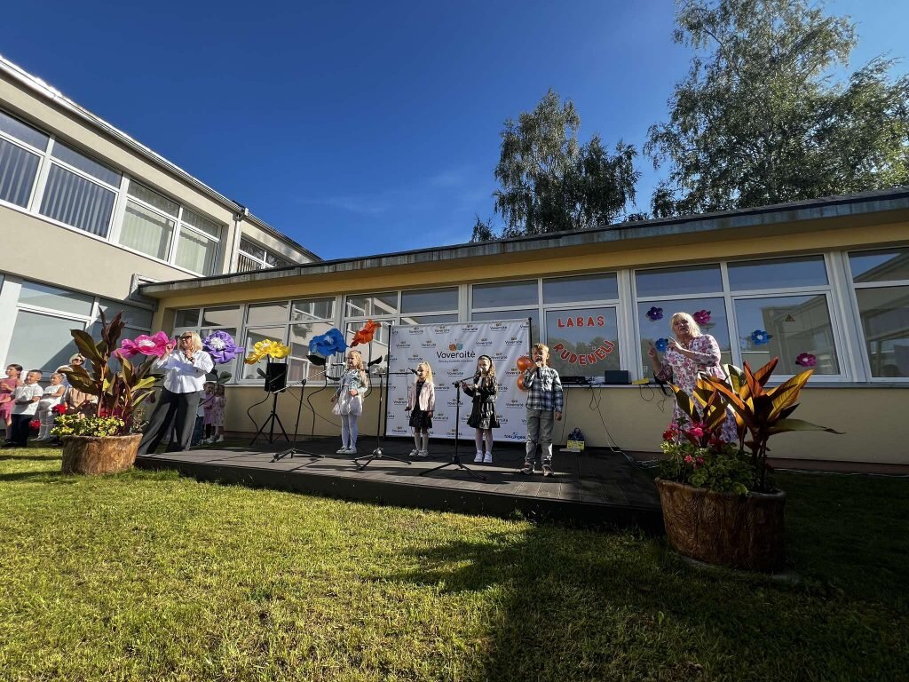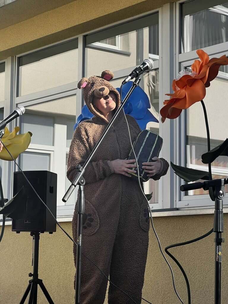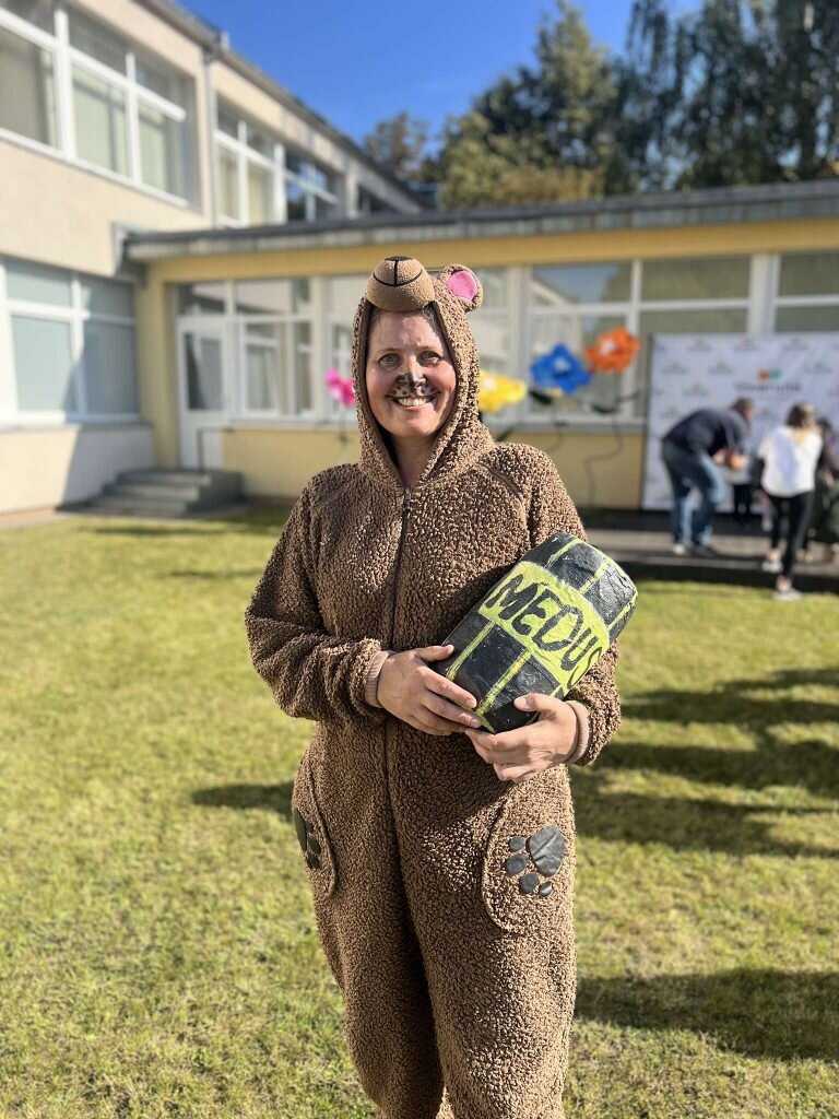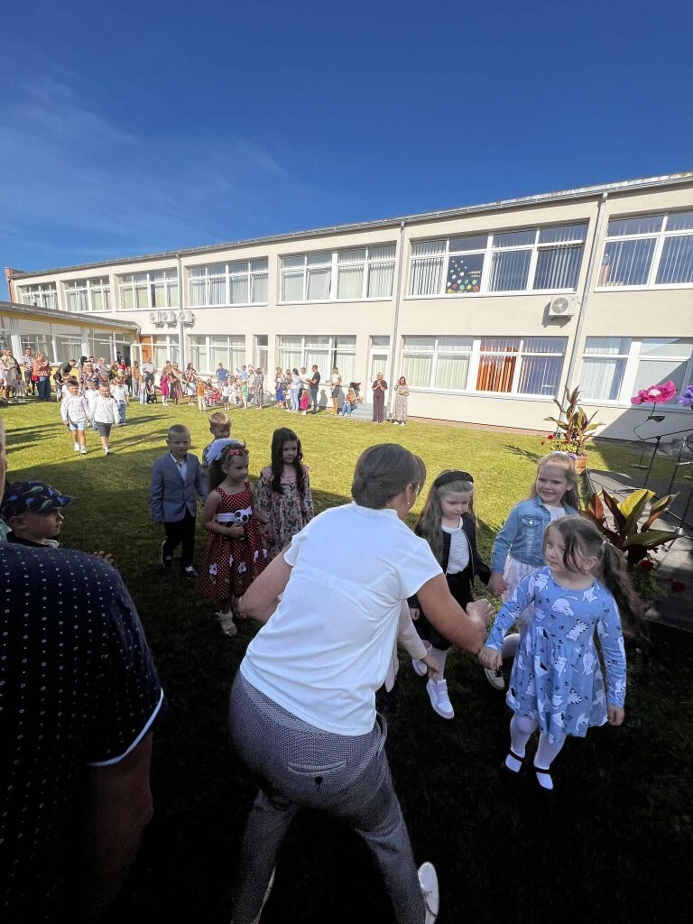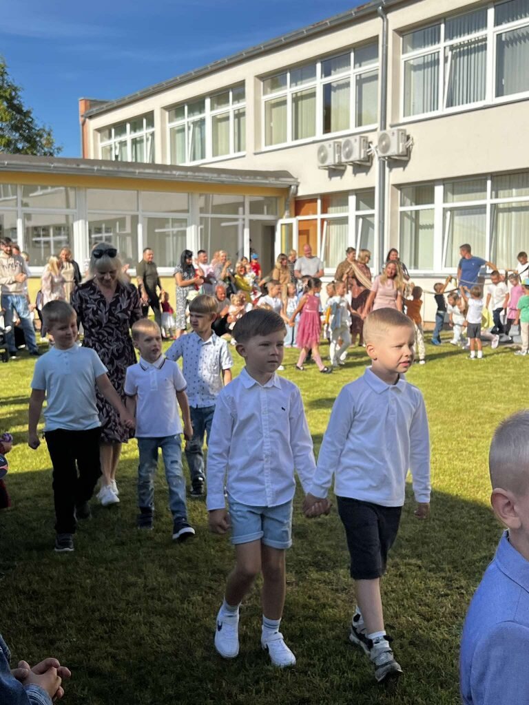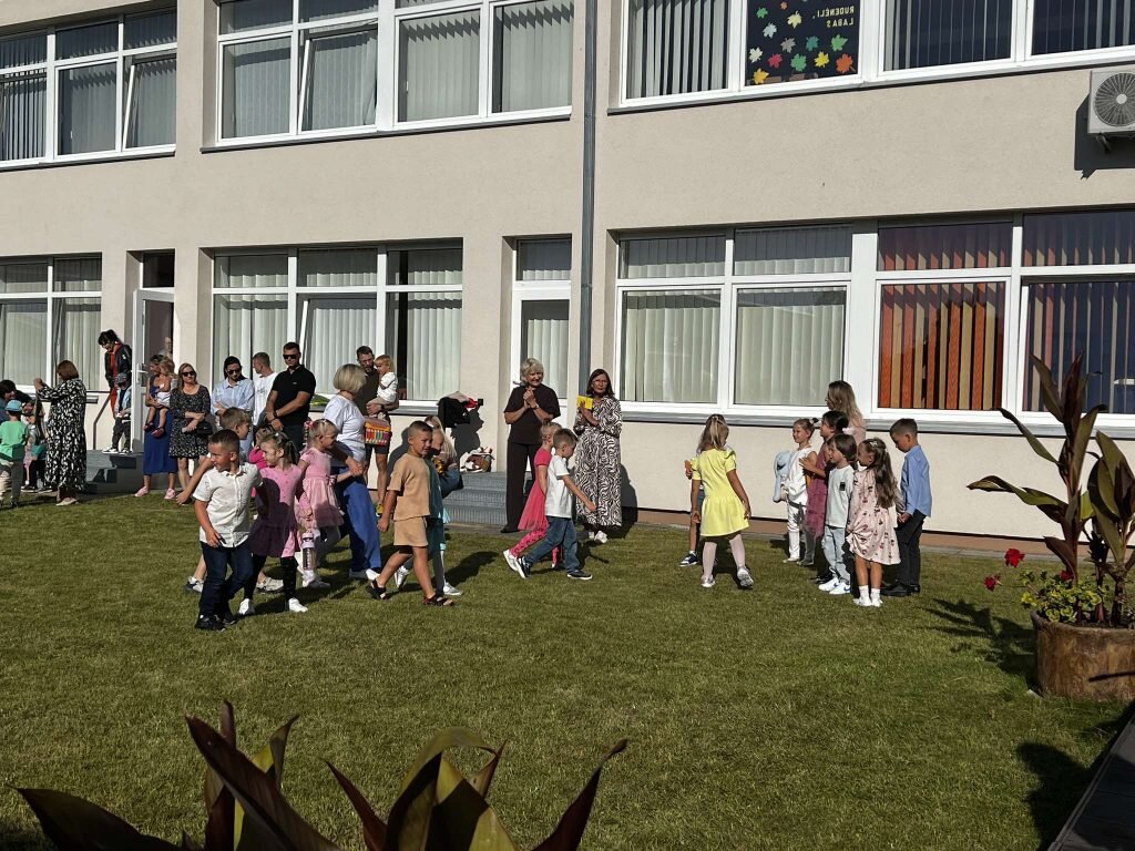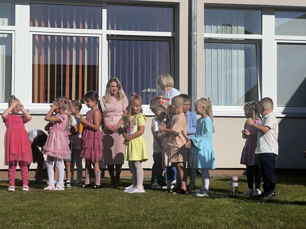 Rugsėjo 1-osios šventė darželyje buvo išties ypatinga. Vaikai ne tik džiaugsmingai šoko, dainavo ir žaidė, bet ir sulaukė netikėto svečio – didelio, draugiško meškino. Jis tapo šventės žvaigžde, o vaikai su džiaugsmu jį supažindino su įvairiomis priemonėmis, kurios dažnai naudojamos kasdienėse darželio veiklose. Jie parodė meškinui dažus, teptukus ir kitas mokymosi priemones, su kuriomis jis smalsiai susipažino. Vaikai buvo labai susijaudinę, galėdami parodyti savo mėgstamiausias veiklas, ir visi kartu smagiai leido laiką. Šventė buvo puiki pradžia naujiems mokslo metams!
