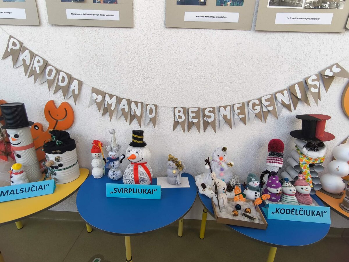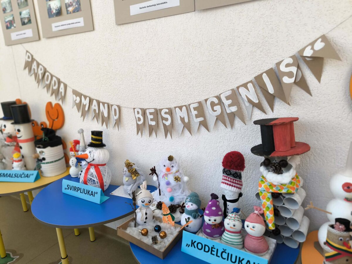 Mieli tėveliai ir bendruomenės nariai, su džiaugsmu pranešame, kad mūsų lopšelyje-darželyje jau startavo kūrybinių darbelių paroda „Mano besmegenis“! Ši spalvinga, šilta ir fantazijos kupina ekspozicija džiugina mažųjų kūrėjų ir jų šeimų rankomis sukurtus besmegenius iš antrinių žaliavų. Parodoje atsiskleidžia vaikų vaizduotė, kūrybiškumas ir šeimų bendrystė – kiekvienas besmegenis unikalus, turintis savo nuotaiką, charakterį ir istoriją. Kartoninės dėžutės, plastikiniai buteliukai, siūlai, audiniai ir kitos antrinės žaliavos čia virto tikrais žiemos stebuklais, kurie ne tik puošia mūsų erdves, bet ir primena apie tvarumo svarbą.