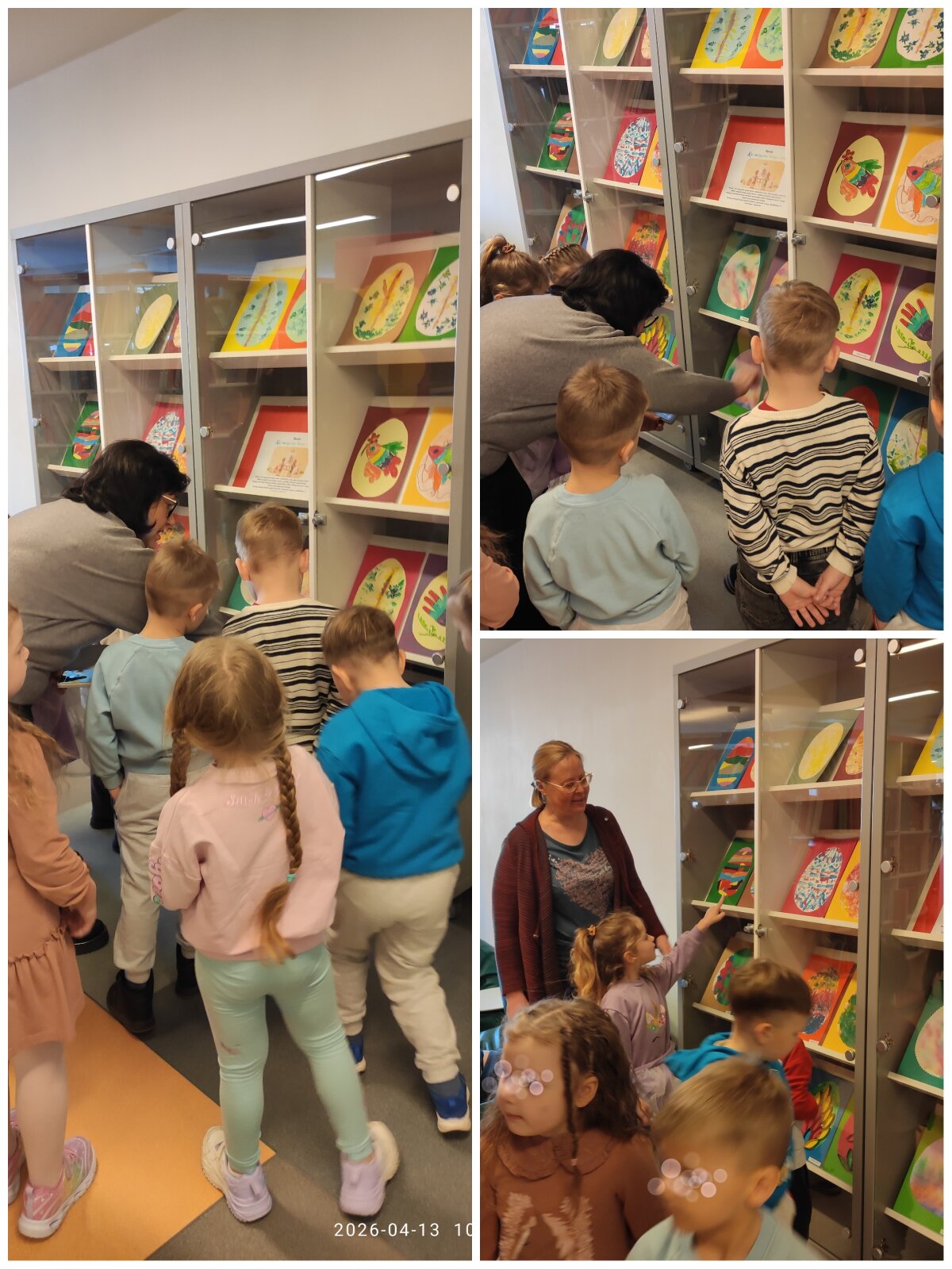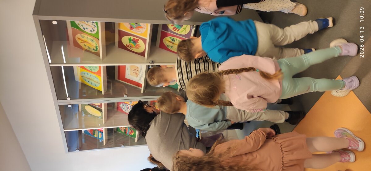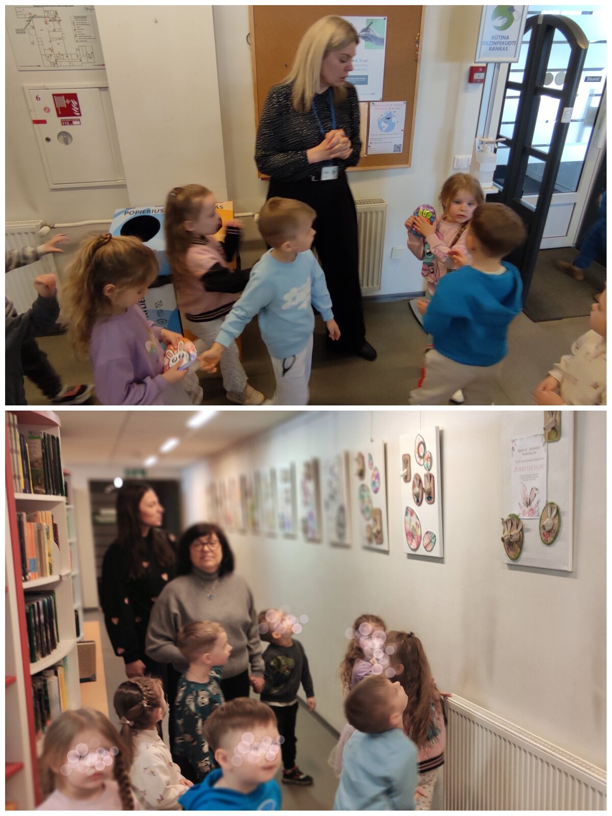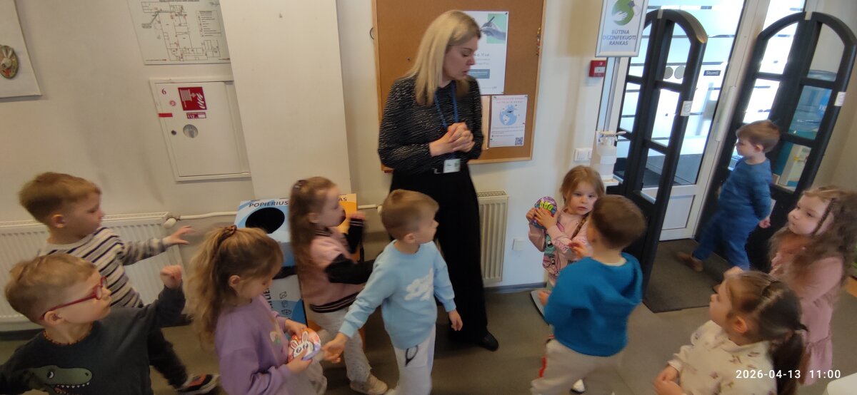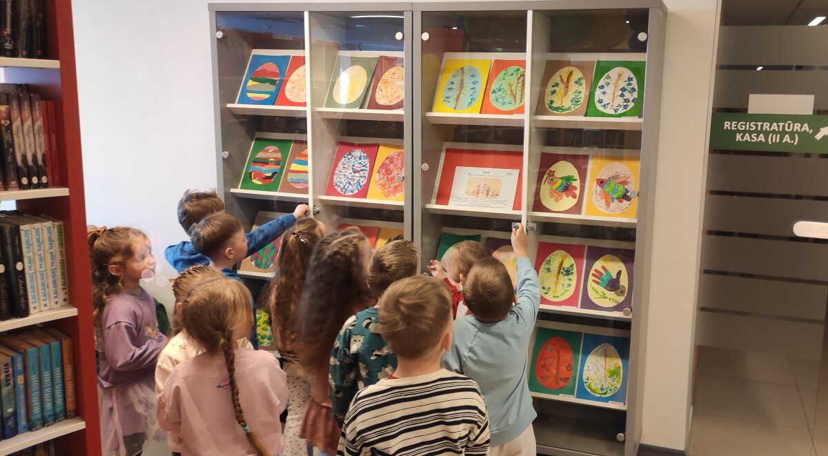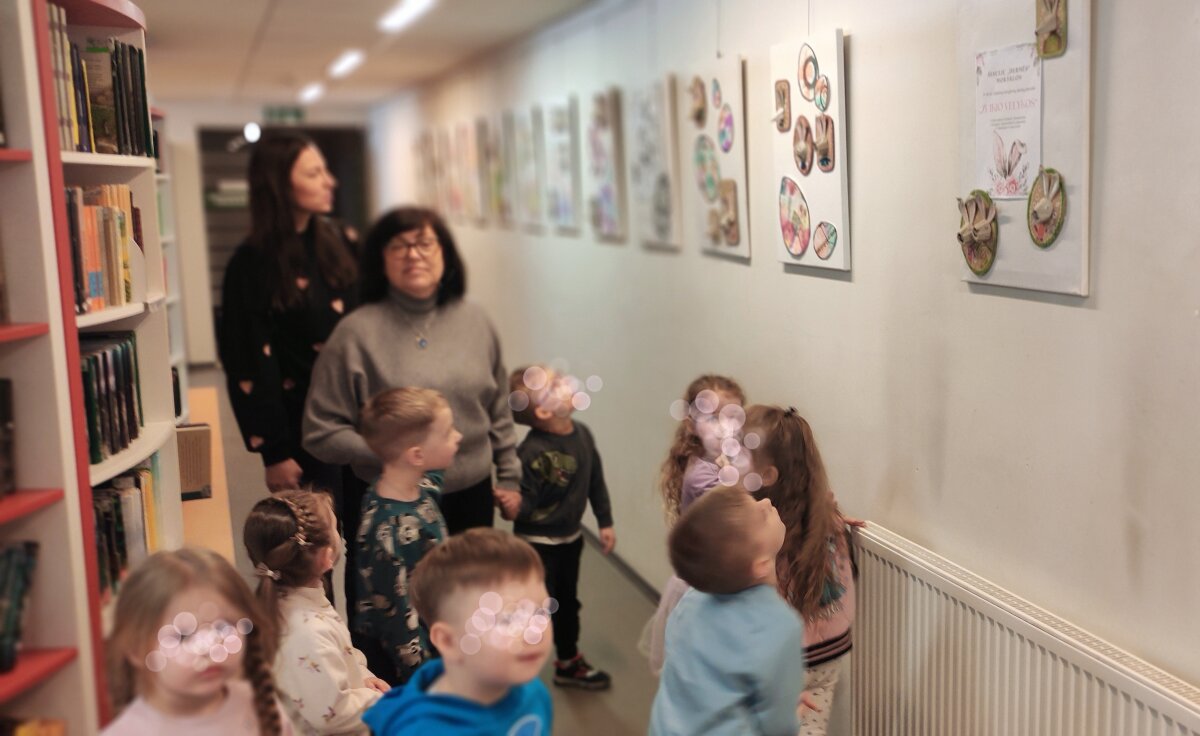 Prieš išvykdami už darželio teritorijos, vaikai išklausė saugaus elgesio gatvėje instruktažą, o bibliotekoje tarp knygų lentynų smalsiai ieškojo savo darbelių – tarsi mažų kūrybos lobių. Vaikai atpažino savo darbus, džiaugėsi galimybe juos pamatyti viešoje erdvėje ir pasidalinti įspūdžiais. Tai sustiprino jų pasitikėjimą savo kūryba ir suteikė naujų patirčių. Vaikų abonemento darbuotoja Vaida supažindino vaikus ir su paroda „Zuikių Velykos“, kurioje pristatyti kitų vaikų kūrybiniai darbai.