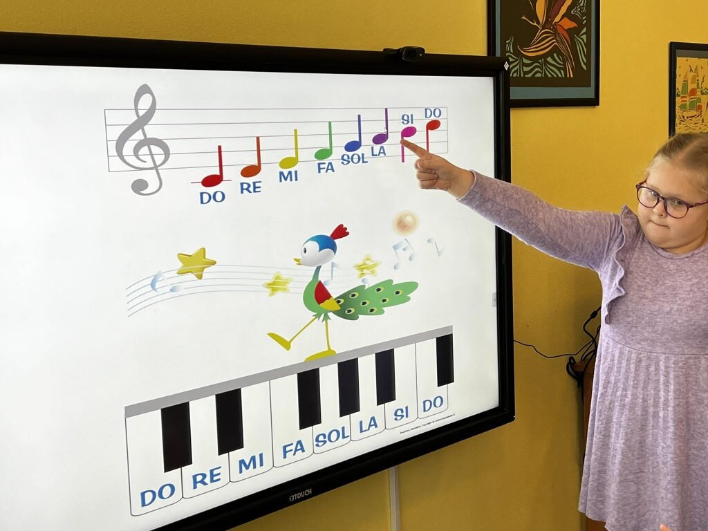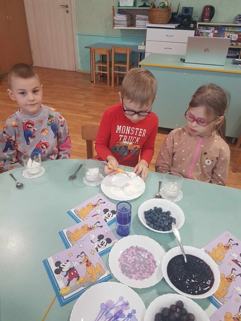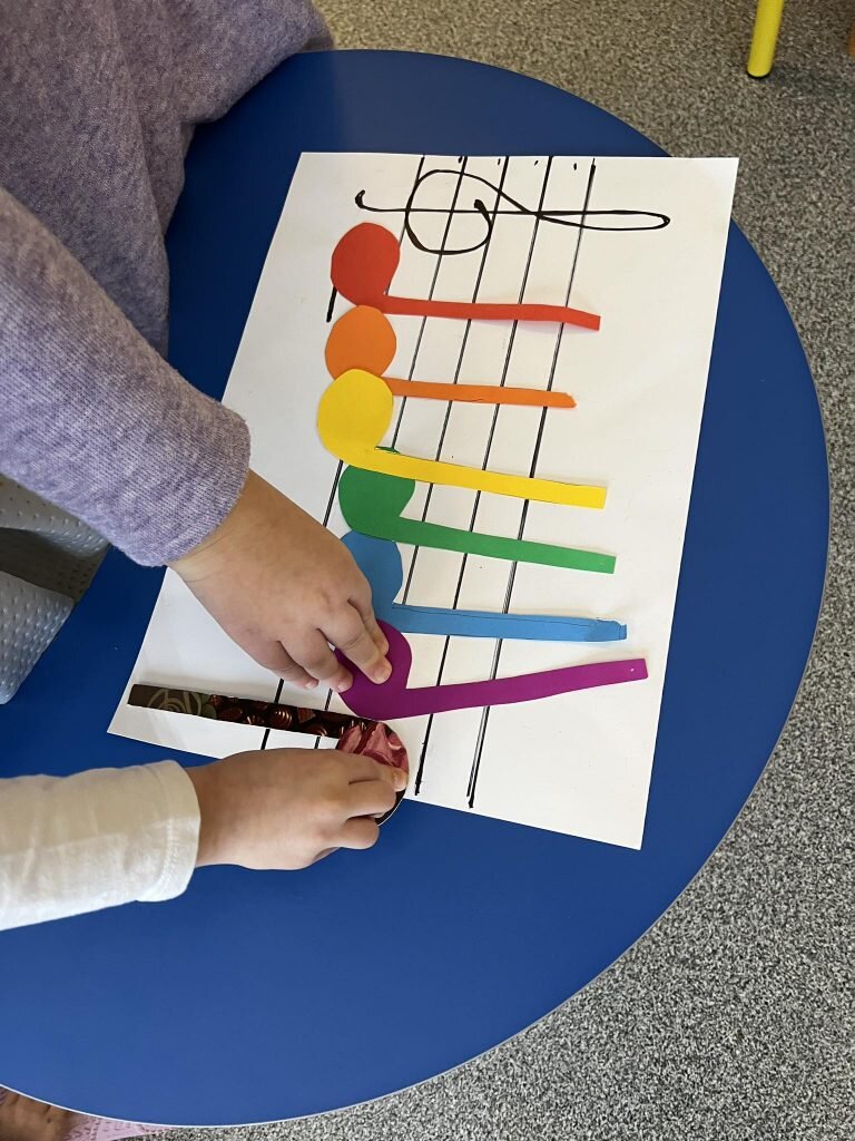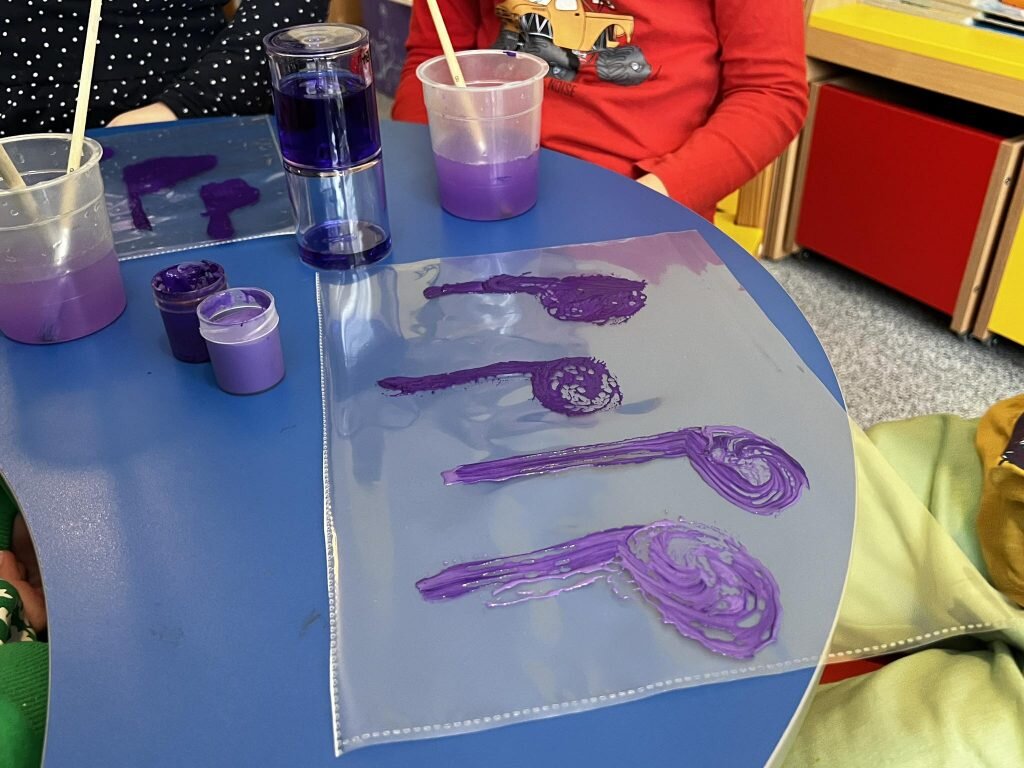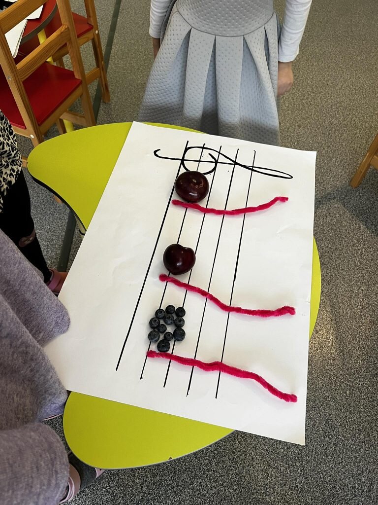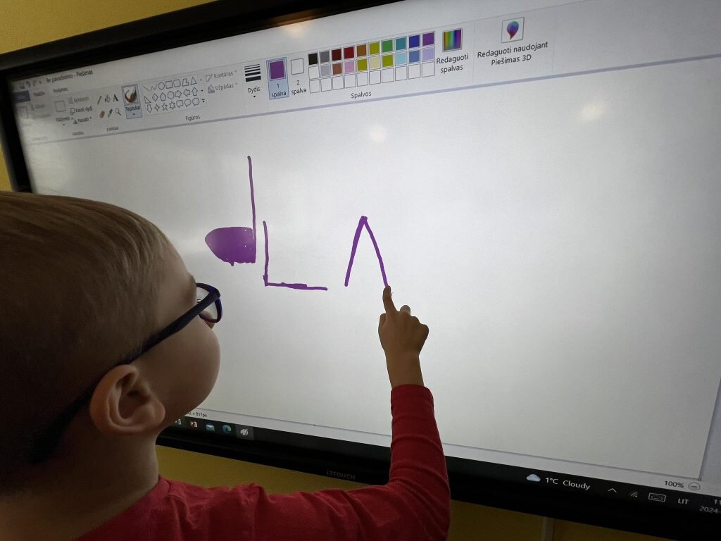2024 m. sausio mėn. „Smalsučiai“ grupės ugdytiniai, meninio ugdymo mokytoja D. Polekienė, priešmokyklinio ugdymo mokytoja V. Tvaskūnienė vykdė Etwinning projektinę veiklą „LA – violetinė savaitė“. Veiklos metu susipažinome su „LA“ nata, dėliojome penklinėje, išplojome ritmiškai. Taip pat penklinėje išdėliojome „LA“ natą iš slyvų, šilauogių, vynuogių. Dainavome, grojome, kad išgirstume, kaip skamba „LA“ elektroniniame pianine, ritmavome būgnais, gongais. Išmaniojoje lentoje, piešimo programos „PAINT“ pagalba piešėme „LA“ natas. O dirbtinio intelekto pagalba, susipažinome su garsiais klasikinės muzikos kompozitoriais (J. S. Bach, L. V. Beethoven, W. A. Mozart), žaidėme melodijos kūrimo žaidimą „Melodijos asistentas“ („Assisted melody“). Pagal sukurtas natas, išklausėme W. A. Mocarto kūrybos, atliekamos pianinu. Išmaniosiose grindyse ritmavome būgnais. Piešėme natas ant plėvelės guašu, džiaugiamės jomis, apšviesdami šviesos stale. Skambant valso muzikai vaikai šoko su krepinio popieriaus juostomis. Grupėje vaikai valgė ledus su mėlynių uogiene, violetiniais pabarstukais, iš šilauogių, vynuogių pasidarė uogų vėrinukus.