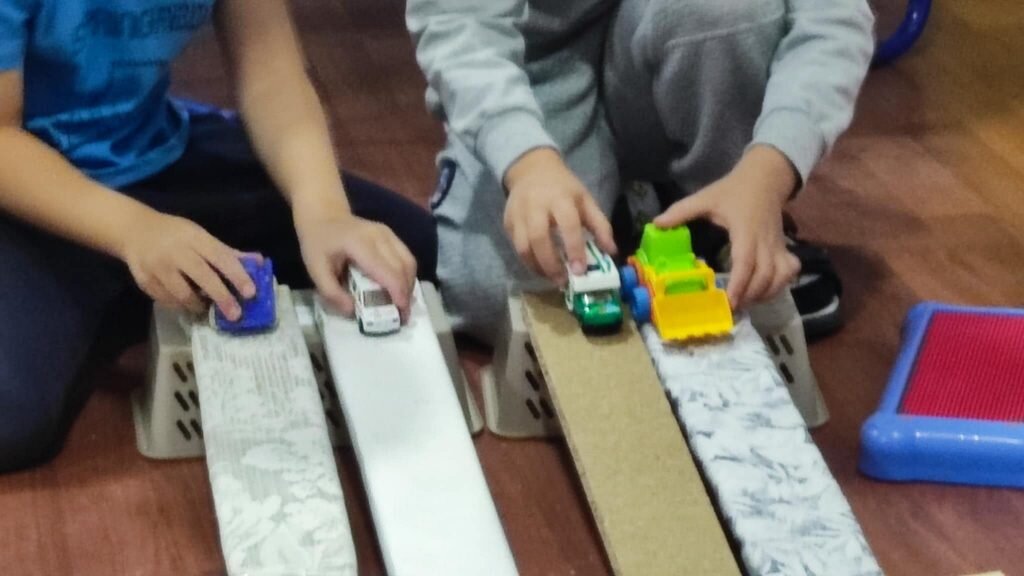 2025 m. lapkričio 19 d. „Pelėdžiukai“ grupės ugdytiniai kartu su mokytoja Sandra ir mokinio padėjėja Daiva STEAM laboratorijoje atliko STEAM veiklą „Mechaninė energija. Energijos virsmai“. Vaikai susipažino su priemonėmis, spėjo, kam jos skirtos, ir jas įvardijo. Jie lygino skirtingų medžiagų kaladėles – silikatinės plytos, medinę ir polistireninio putplasčio – bei jas svėrė. Paleidę kaladėles iš vienodo aukščio, vaikai pastebėjo, kad nors jų masės skyrėsi, jos žemę pasiekė tuo pačiu metu. Ant smėlio jie tyrinėjo paliktus įspaudus ir suprato, kad sunkesnė kaladėlė paliko gilesnę žymę dėl didesnės mechaninės energijos. Ugdytiniai nuo kalnelio leido mašinėles ir stebėjo, kaip kalnelio aukštis veikė jų greitį, o vėliau tyrė, kaip skirtingi paviršiai – gofruoto tapeto, minkštos medžiagos, tinklelio ir medienos – keitė riedėjimą ir kūnų trintį. Vaikai matavo mašinėlių nuvažiuotą kelią santykiniais vienetais, naudodami pačių pagamintus žymeklius su skaičiais ir figūrėlėmis, išdėliotais vienodais atstumais. Jie tyrė, kaip skirtingos dangos veikė mašinėlės sustojimo vietą. Veiklos metu ugdytiniai susipažino su sąvokomis „mechaninė energija“, „kinetinė energija“, „masė“, „svoris“ ir „trintis“. Pakartojo skaičiavimą iki 10. Matuodami, lygindami, keldami hipotezes ir atlikdami eksperimentus, vaikai lavino kritinį mąstymą, tyrinėjimo gebėjimus, o taip pat stiprino bendradarbiavimo, problemų sprendimo, matavimo, samprotavimo ir smulkiosios motorikos įgūdžius.