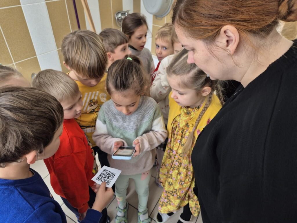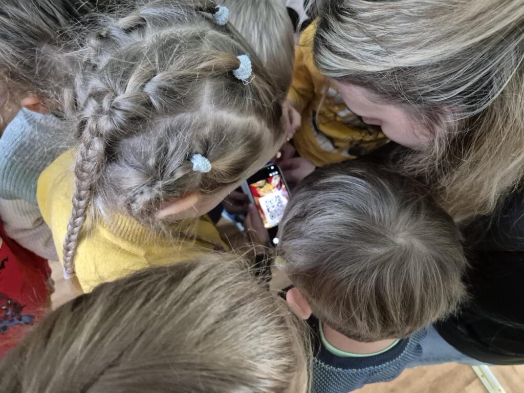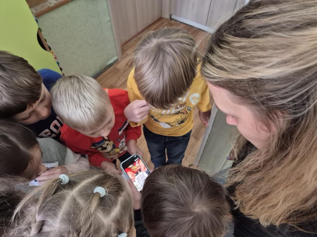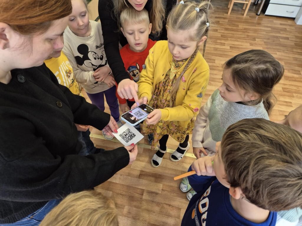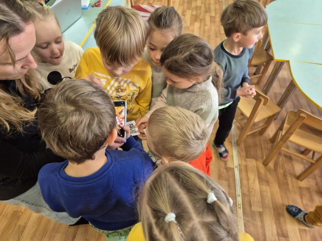 Grupės ,,Smalsučiai“ vaikai kartu su mokytoja Viktorija B., mokinio padėjėja Dovile B. ir socialine pedagoge Severija G. dalyvavo QR mįslių mėdžioklėje. Veiklos metu vaikai aktyviai tyrinėjo grupės erdves, naudodami QR kodus, kurie buvo paslėpti įvairiose vietose. Kiekvienas nuskenuotas qr kodas atskleisdavo naują mįslę arba užuominą. Vaikai turėjo ją išspręsti, kad galėtų rasti kitą kodą ir judėti į priekį. Šis procesas skatino ne tik smalsumą ir aktyvų judėjimą, bet ir loginį mąstymą bei bendradarbiavimą – vaikai dalijosi mintimis, tarpusavyje kalbėjosi ir padėdavo vieni kitiems sprendžiant užuominas. Įveikę visas mįsles, vaikai buvo apdovanoti lipdukais, kurie simbolizavo jų pastangas, atkaklumą ir sėkmingą bendradarbiavimą.
