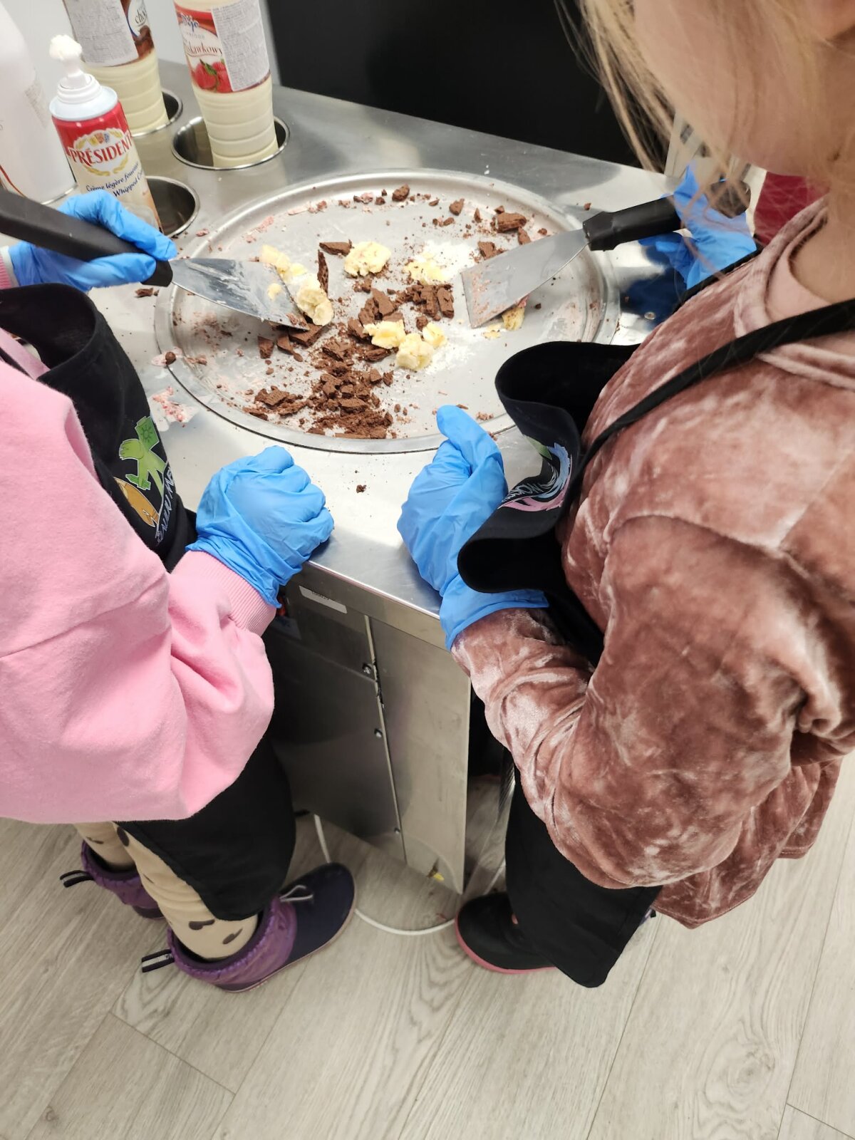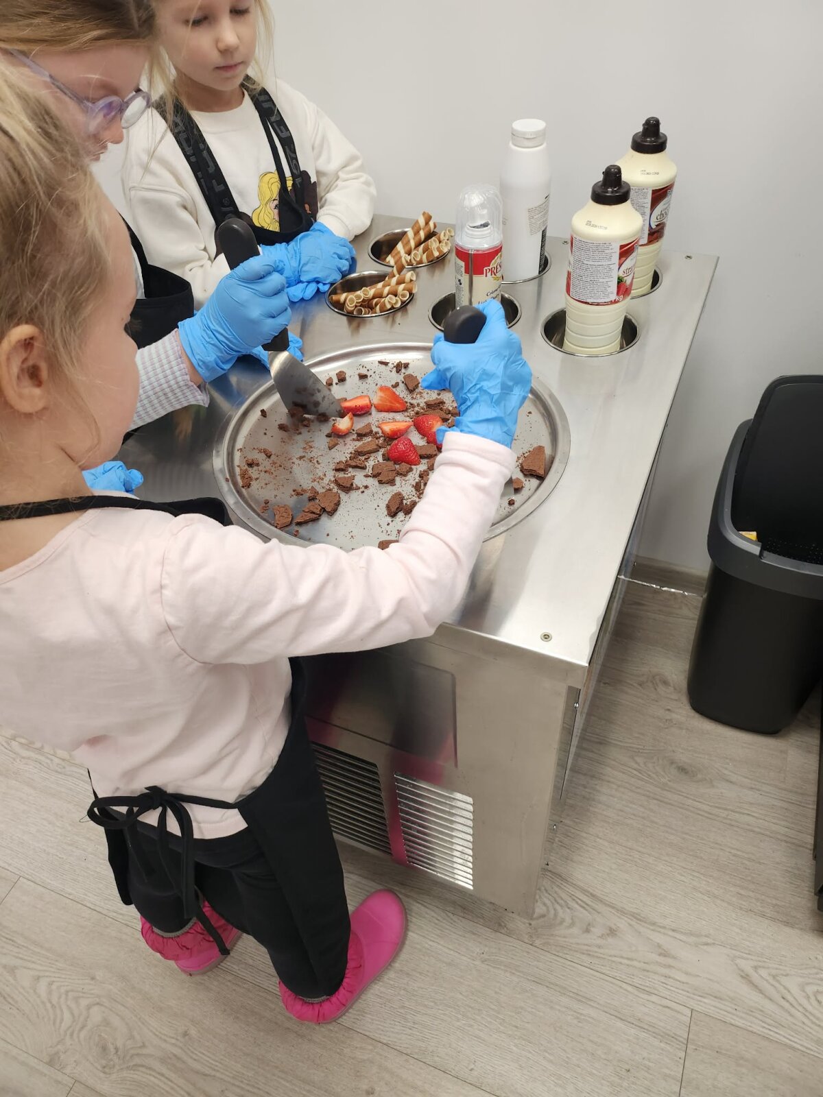 Vaikai turėjo galimybę apžiūrėti tikrą ledų gaminimo aparatą, susipažinti su jo veikimo principu ir stebėti, kaip technologijos padeda kurti saldžius stebuklus. Tai buvo puiki proga ugdyti STEAM gebėjimus – stebėti, tyrinėti ir kelti hipotezes.