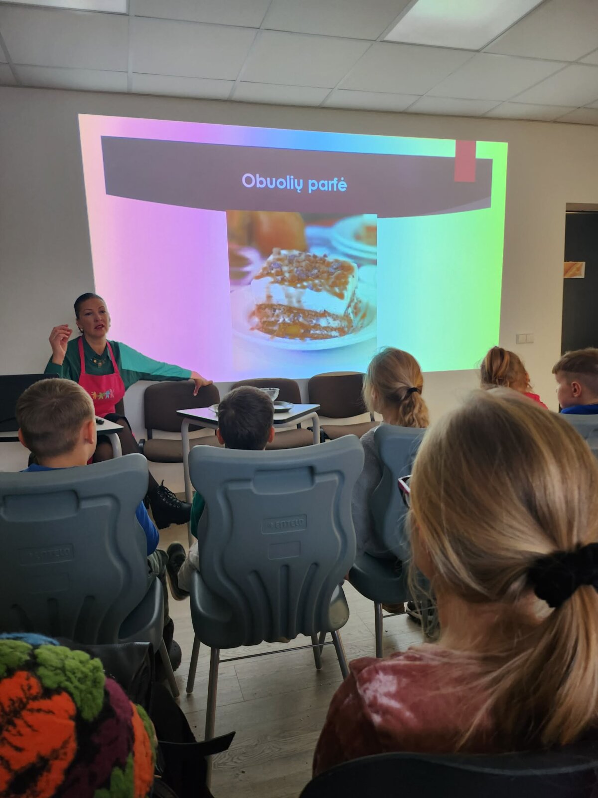 Užsiėmimo pradžioje vaikai žiūrėjo skaidres ir trumpą filmuką apie ledų atsiradimo istoriją, susipažino su įvairiomis ledų rūšimis bei sužinojo, iš kur atsiranda mėgstamiausi skoniai. Šios žinios žadino smalsumą, plėtė vaikų žodyną ir skatino domėtis pasauliu – tarsi po truputį atveriant adventinio laukimo stebuklą.