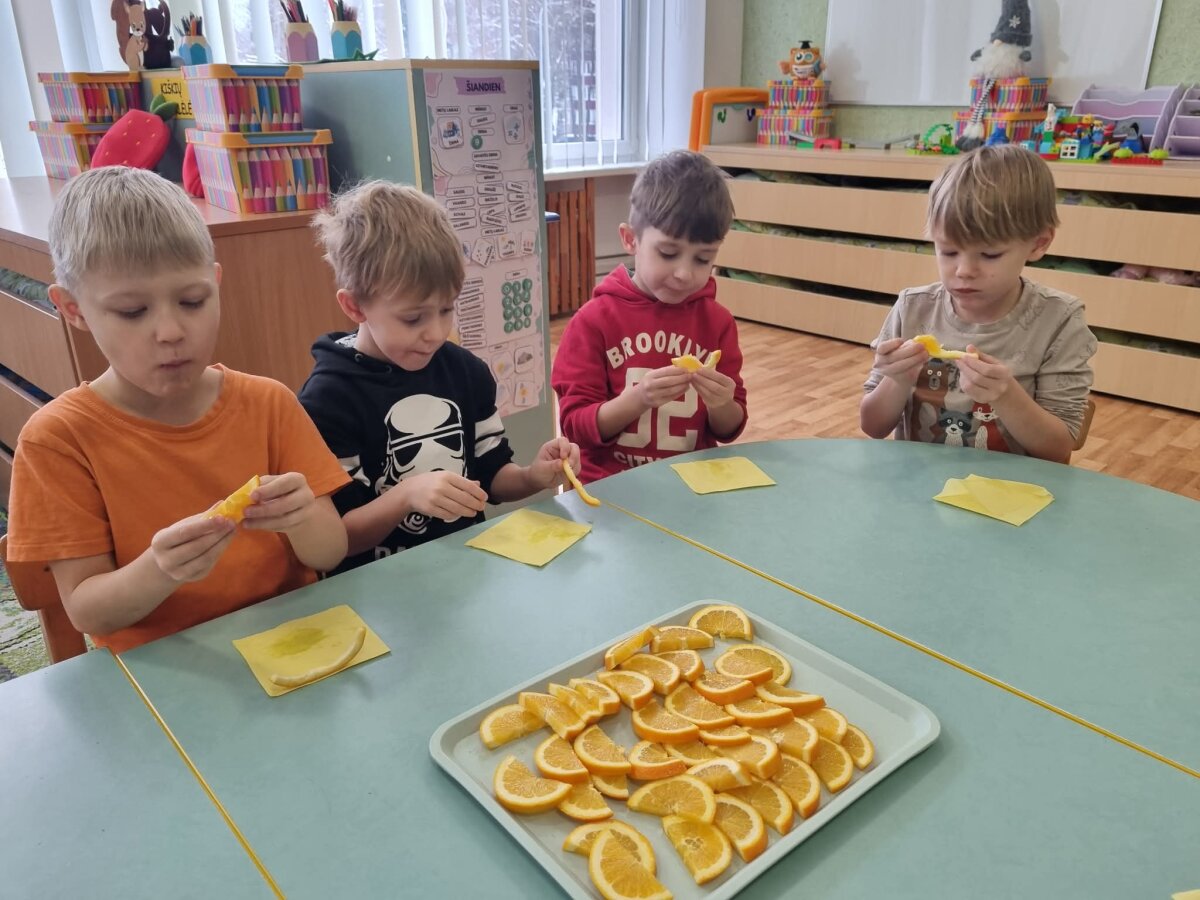 Vaikai reguliariai gauna obuolius, kriaušes, pjaustytas morkas, pieną, jogurtą ir kitus produktus. Visi tiekiami produktai yra ekologiški arba pagaminti pagal nacionalinę maisto kokybės sistemą. Juos į ugdymo įstaigą pristato patvirtinti tiekėjai.