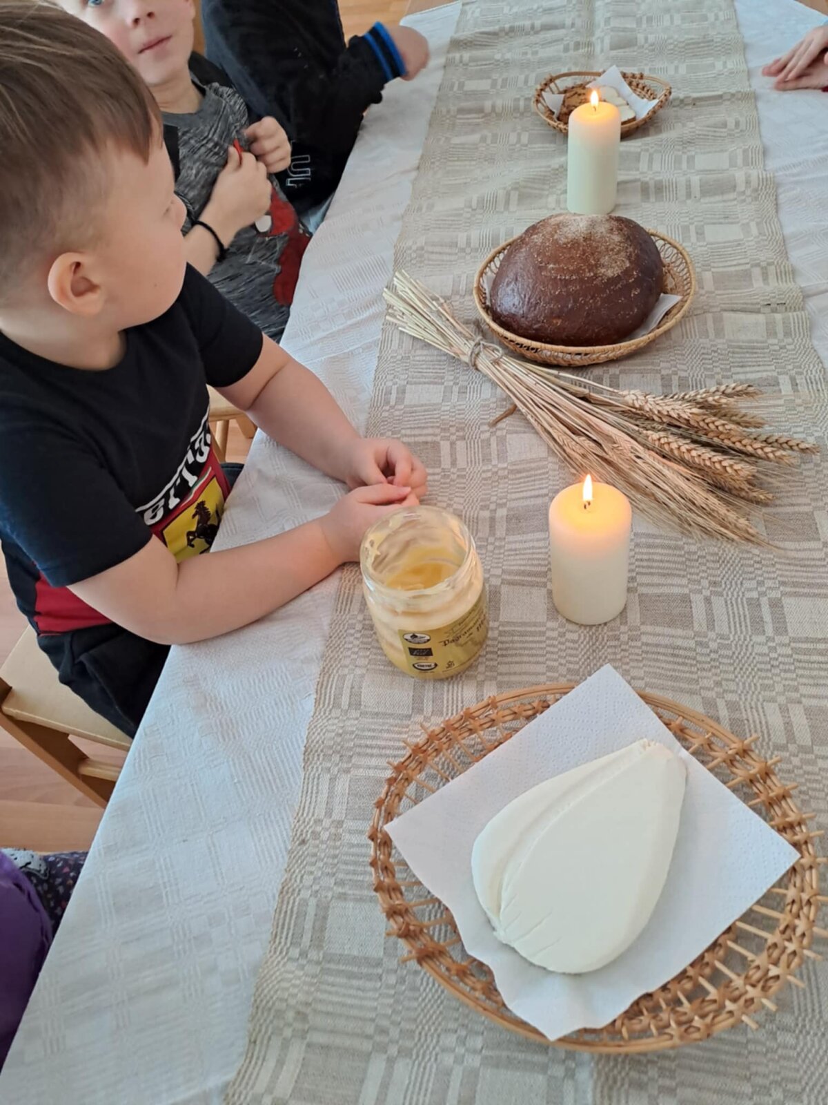 Ant vaišių stalo buvo išdėliota kvapni juoda ir balta duona, naminiai varškės sūriai su kmynais ir be jų, saldus medus bei rūkytas varškės sūris. Vaikai smalsiai apžiūrinėjo produktus, uostė jų aromatus ir spėliojo, iš ko jie pagaminti. Ragavimo metu mažieji lygino skonius, aptarė, kuris jiems labiausiai patiko ir kodėl.