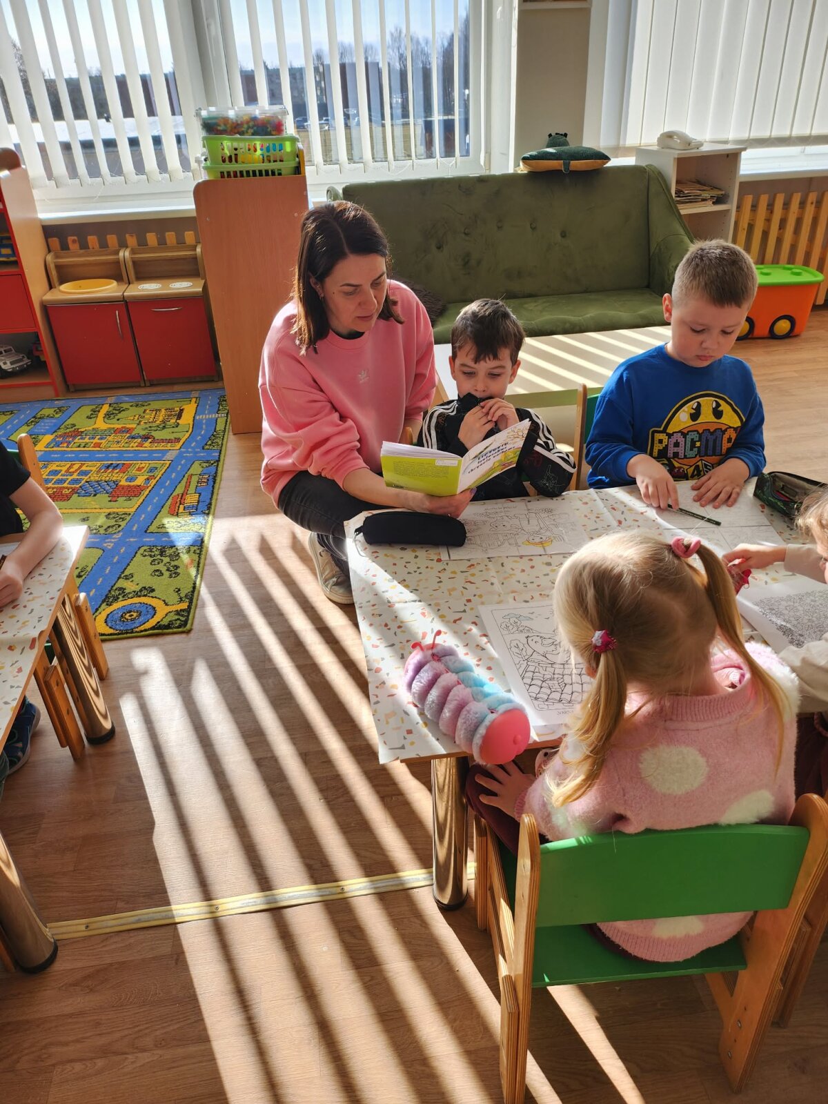 ,,Skruzdėliukai “ grupės vaikams pasakas skaitė tetos: virėja Vilija, mokytojo padėjėja Ingrida, mokinio padėjėja Dovilė. Pati mėgstamiausia vaikų pasaka buvo nominuota - "Žvirblelis ant krantelio"