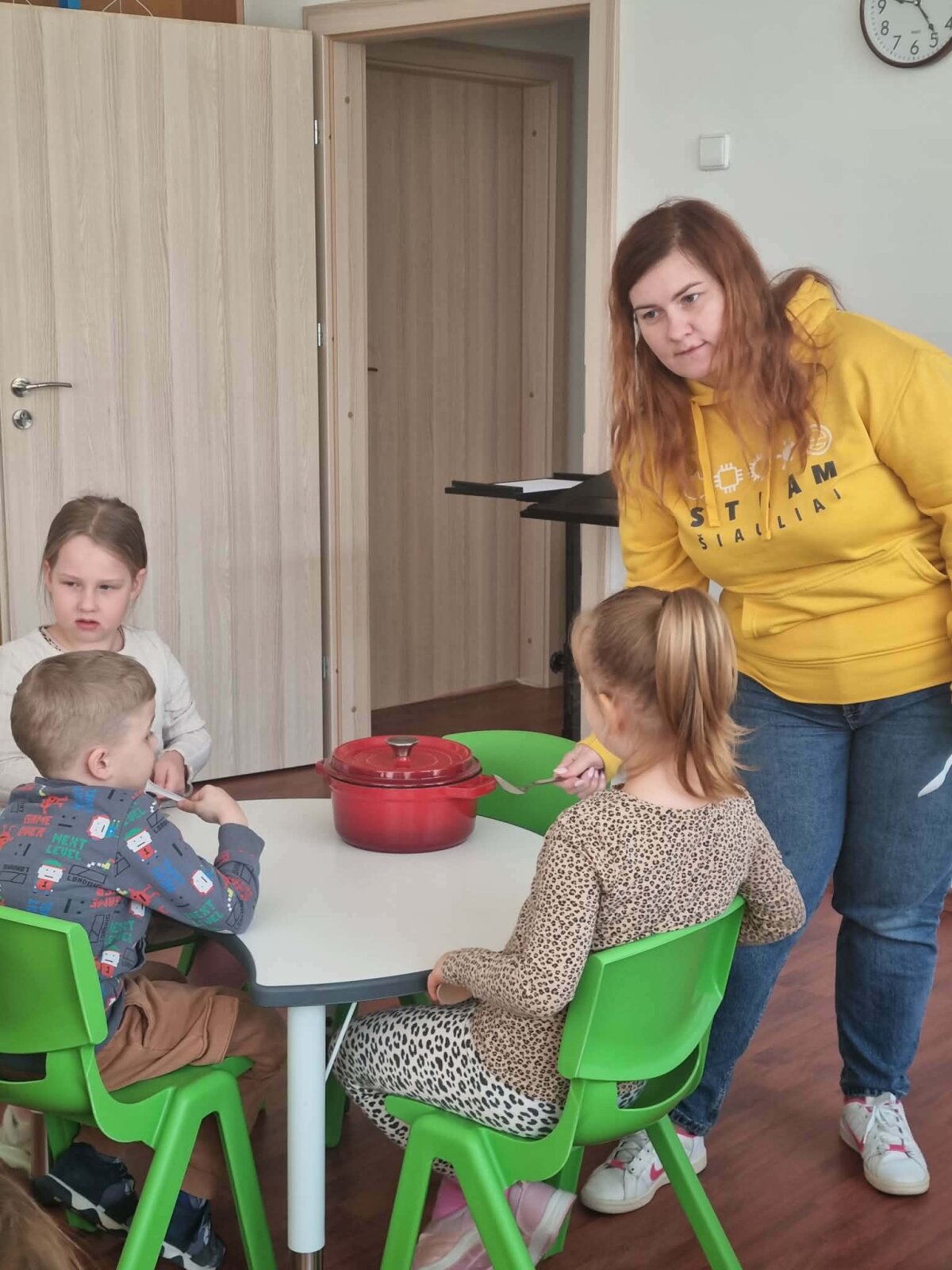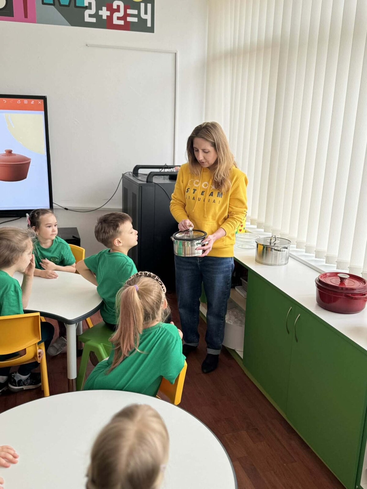 Veiklos metu ugdytiniai tyrinėjo, iš kokių medžiagų gaminami puodai, aiškinosi, kuris puodas ilgiausiai išlaiko šilumą ir kam jie naudojami kasdienybėje. Vaikai ne tik susipažino su įprasta puodų paskirtimi, bet ir atrado jų kūrybiškas panaudojimo galimybes – tyrinėjo, kaip skirtingi puodai skamba.