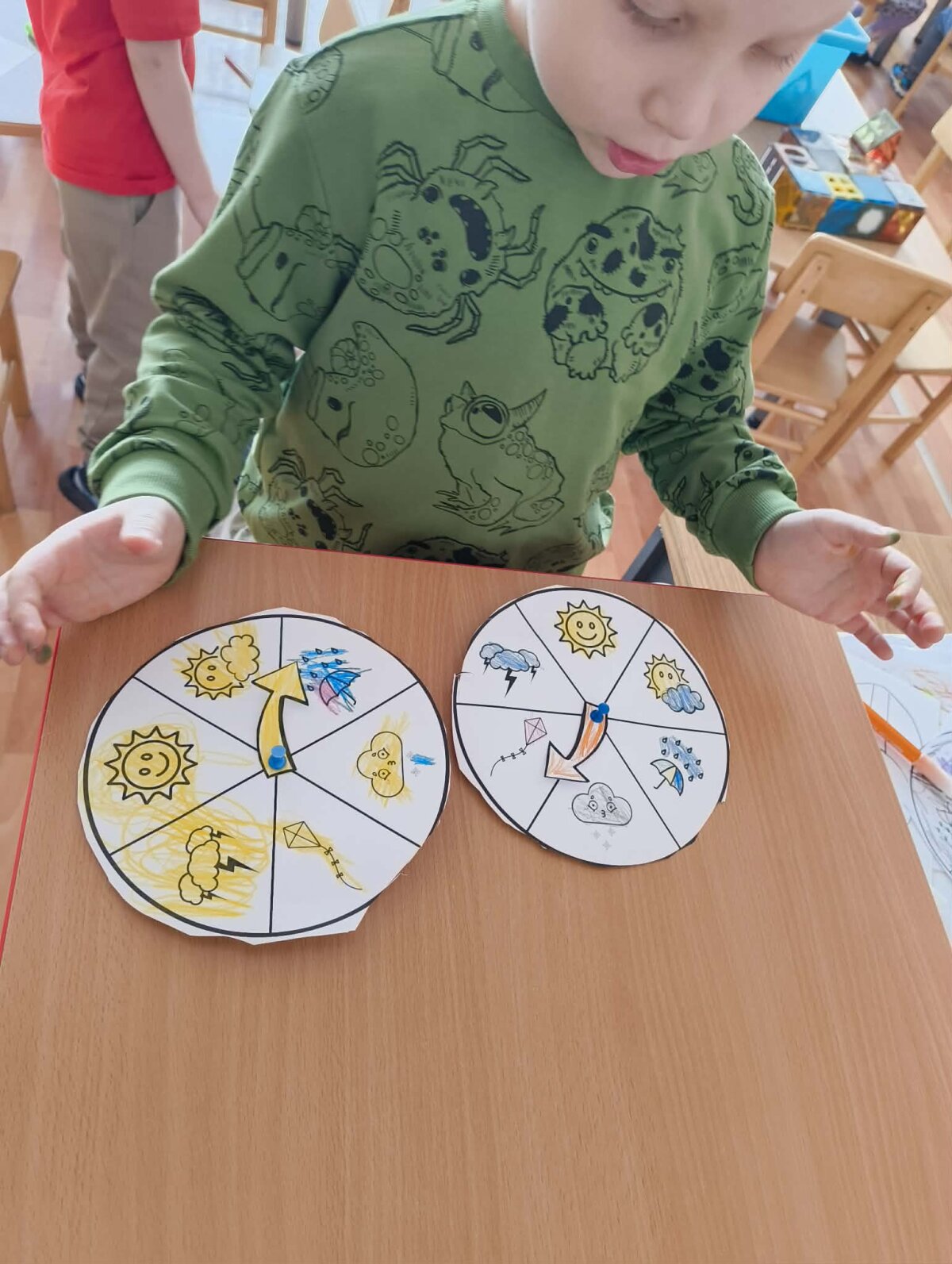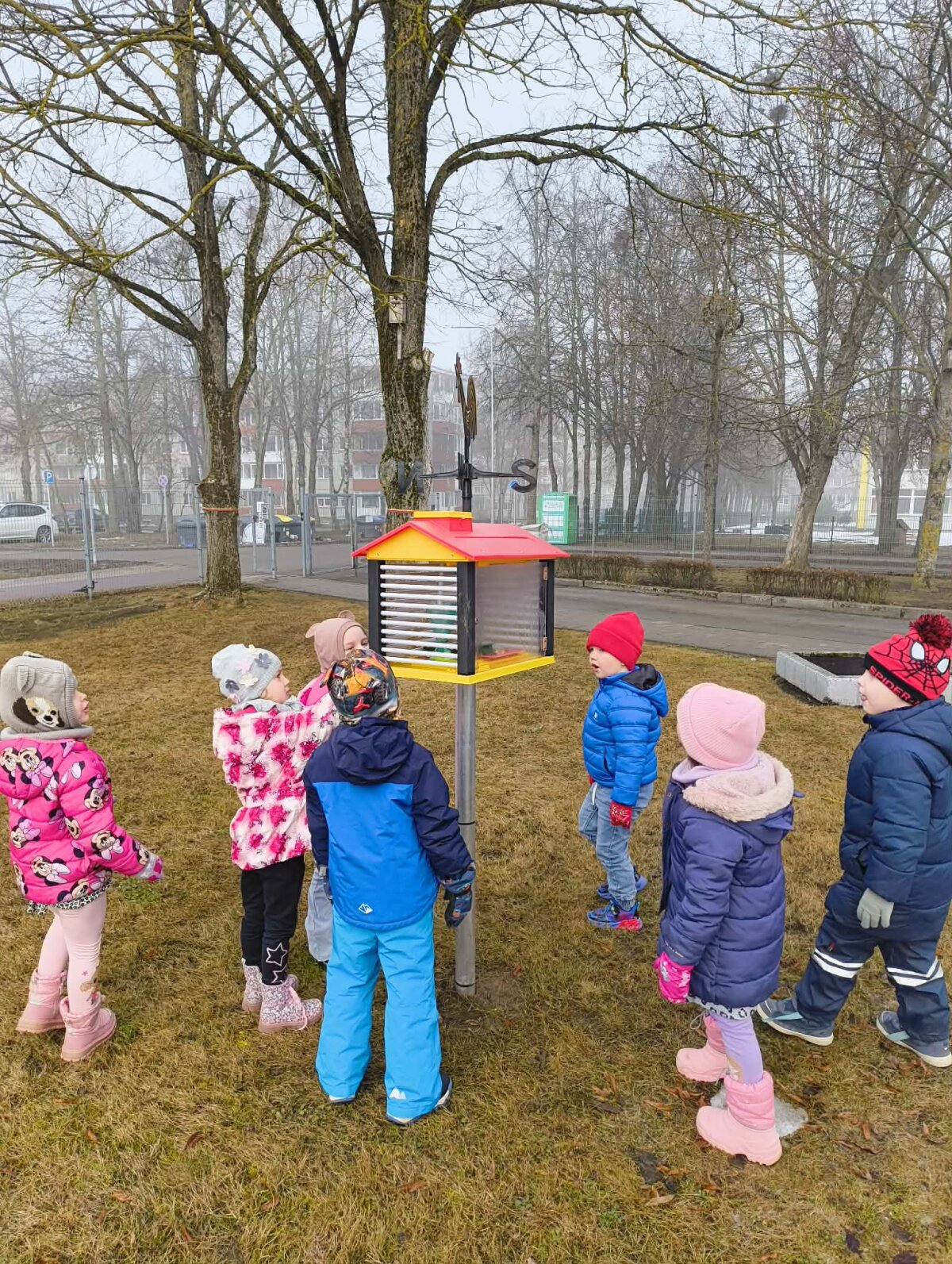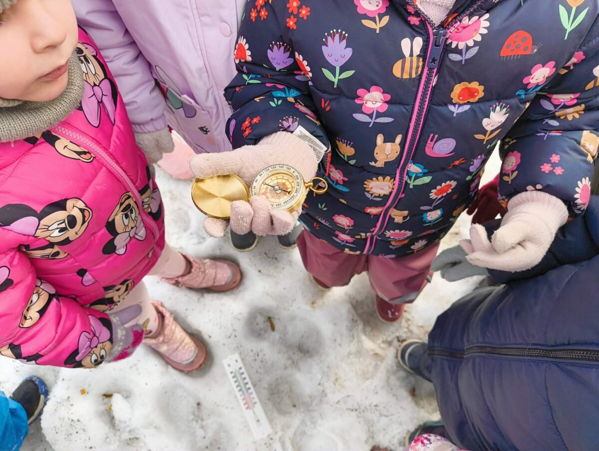 Prasidėjus pavasariui „Voveriukų“ grupės vaikai susidomėjo orais ir tapo tikrais mažaisiais orų detektyvais. Kartu su mokytoja Sandra lankydamiesi darželio meteorologijos stotelėje jie sužinojo, kad viršuje esančios raidės rodo vėjo kryptį, susipažino su prietaisais – kompasu ir lauko termometru. Atlikdami smagius tyrinėjimus vaikai mėtė balioną į viršų ir stebėjo, kuria kryptimi jis skrenda, o savo pastebėjimus tikrino pagal kompaso ir stotelės rodmenis. Mažieji tyrinėtojai mokėsi suprasti termometro parodymus, išsiaiškino, kur yra šiluma, kur šaltis, ir net išmatavo oro bei sniego temperatūrą. Kūrybinėje veiklos dalyje vaikai ant asfalto kreidelėmis piešė įvairius orus, o draugai bandė atspėti, ką kiekvienas pavaizdavo. Taip su rulete išmatavo stotelės aukštį ir plotį. Grįžę grupėje kiekvienas pasigamino po oro matuoklį ir visa savaitę juo naudojosi.