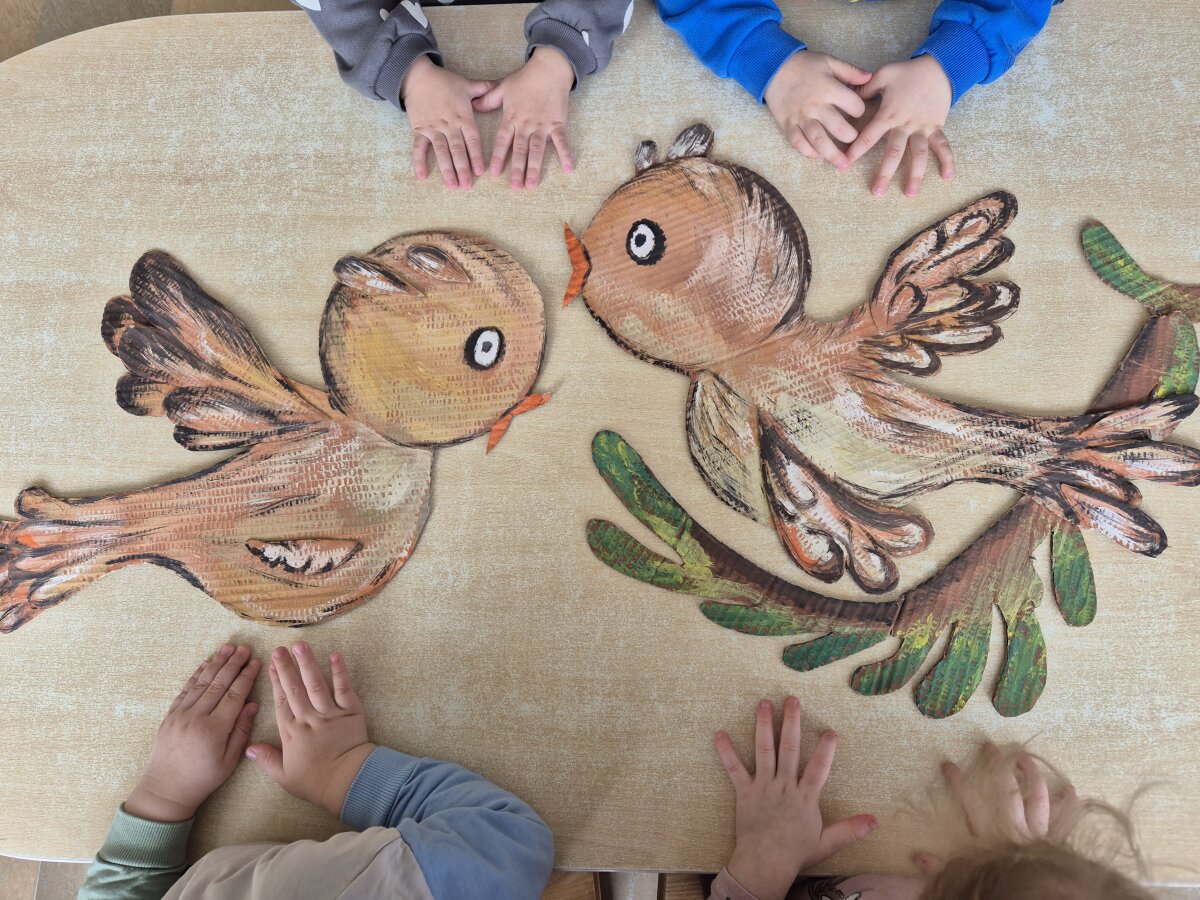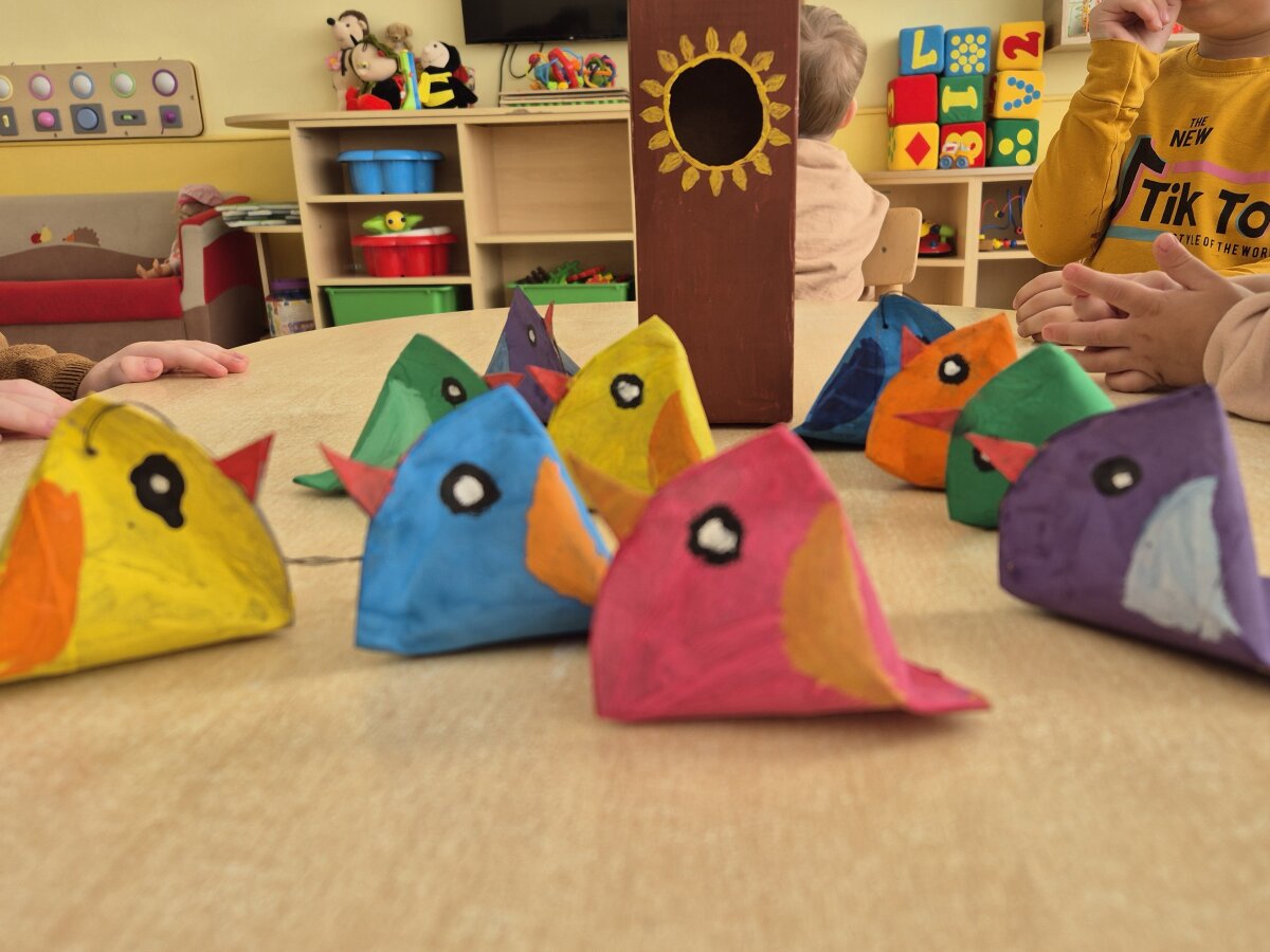 Kovo 2-20 dienomis „Pabiručiai“ grupės vaikai drauge su mokytojomis Stefanija, Regina ir mokytojo padėjėja Audrone dalyvavo tarptautinėje ikimokyklinio amžiaus vaikų kūrybinių darbų parodoje „Tvari pavasario laboratorija 2026“. Parodos tikslas-ugdyti vaikų ekologinį sąmoningumą, atsakomybę už aplinką ir tvaraus gyvenimo įpročius nuo ankstyvojo amžiaus, skatinant kūrybiškumą, saviraišką ir bendruomeniškumą per STEAM veiklas ir antrinių medžiagų panaudojimą. Ugdytiniai kartu su mokytojomis leidosi į smagią pavasario kelionę. Iš tualetinio popieriaus ritinėlių kūrė spalvingas gėlytes ir linksmus paukštelius-kiekvienas vaikas rinkosi savo mėgstamas spalvas ir drąsiai spalvino guašo dažais ir teptukais. Vaikai džiaugsmingai įvardijo spalvų pavadinimus: „raudona, žalia, geltona...“. Iš pieno pakuočių gamino jaukius namukus paukšteliams-inkilus. Klijuodami, spalvindami paukštelius, vaikai susipažino su jų kūno dalimis ir bandė juos pavadinti. Veiklų metu žaidė muzikinį žaidimą „Žvirbli, žvirbli“-plasnojo rankytėmis, kaip paukšteliai, šokinėjo ir linksmai kartojo judesius pagal dainelės žodžius. Žaisdami ir kurdami vaikai susipažino su pirmaisiais pavasario pažymiais. Lavino smulkiąją motoriką, kalbinę raišką ir patyrė daug teigiamų emocijų.