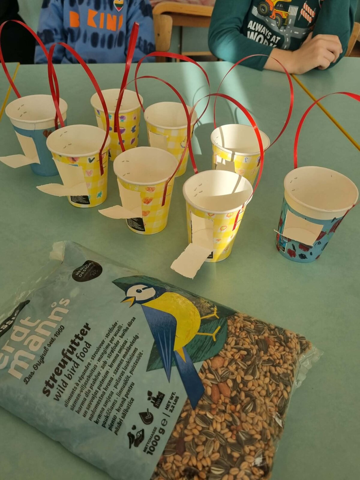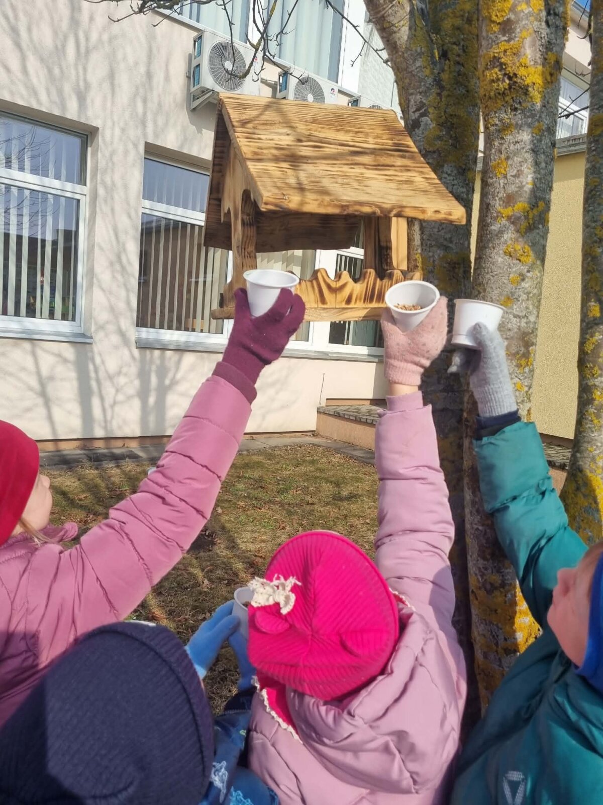 Norėdami pasitikti sugrįžtančius paukštelius ir pavasarį, vaikai nusprendė sukurti mažas lesyklėles iš vienkartinių stiklinaičių.