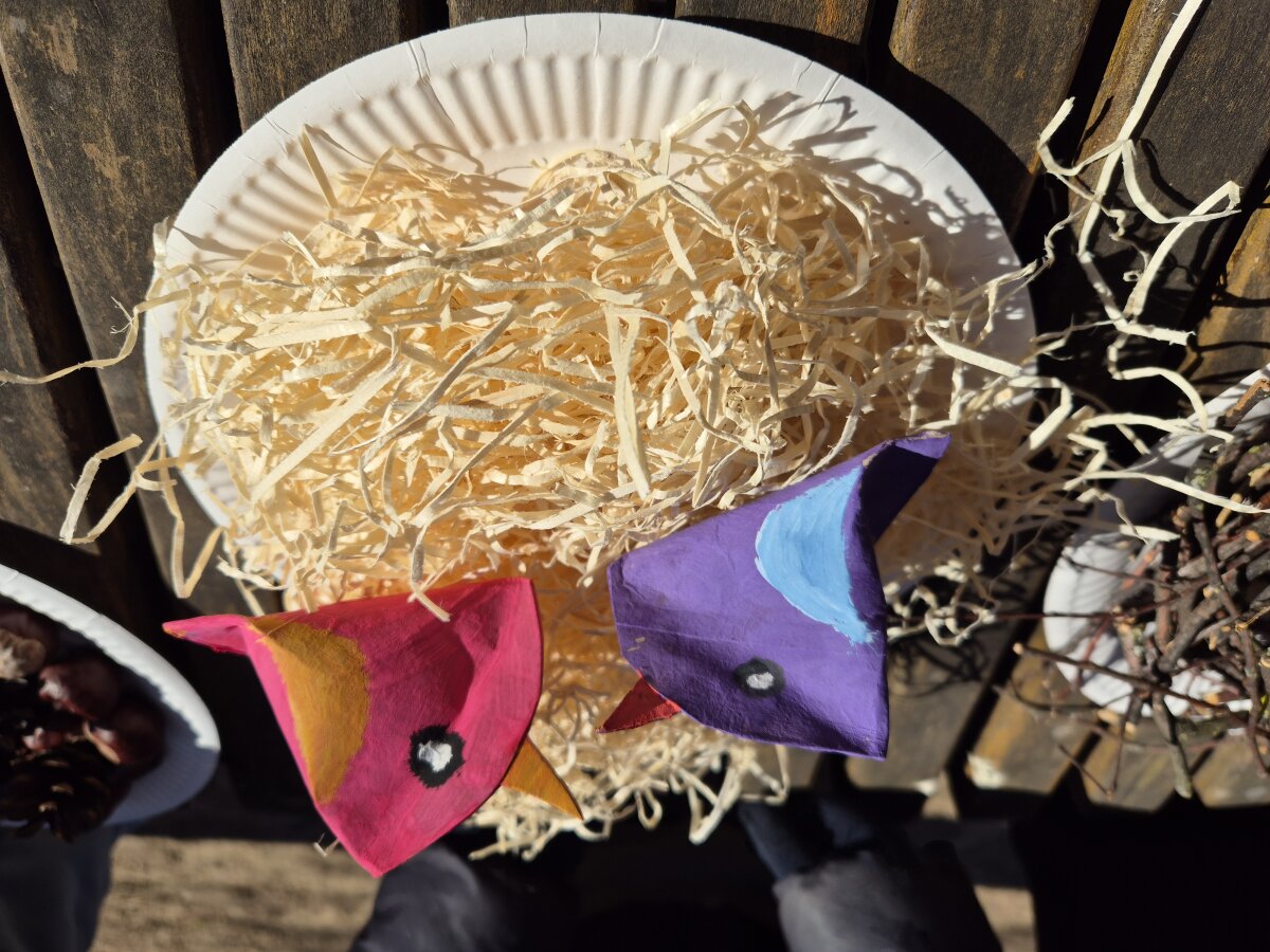 tikslas buvo iš gamtinės medžiagos kurti paukšteliams lizdelius, lavinti sensorinius gebėjimus ir kūrybinį