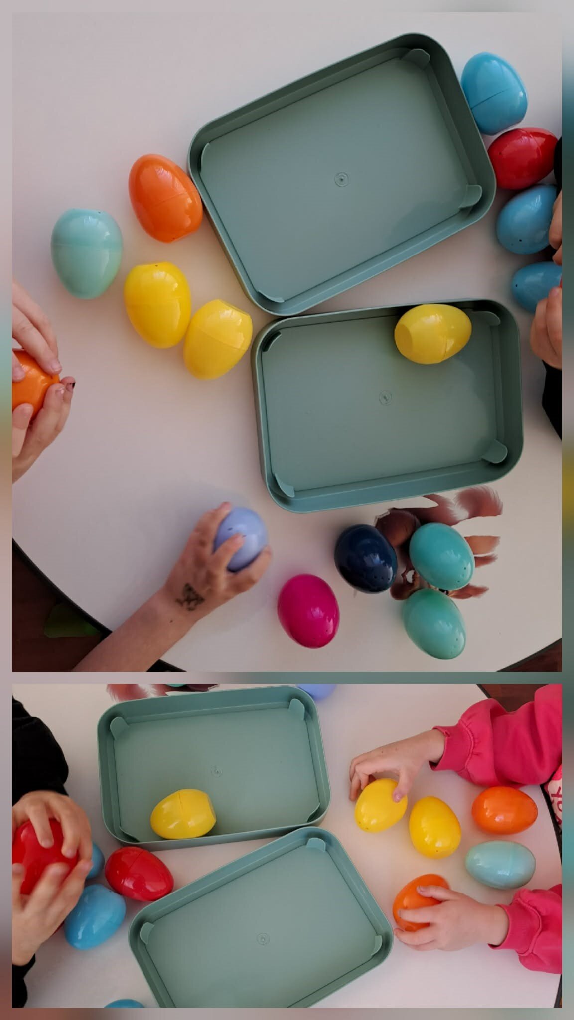 2026 m. kovo 30 d. grupės „Pelėdžiukai“ vaikai kartu su mokytoja Egle ir mokinio padėjėja Naste dalyvavo kūrybinėje–tiriamojoje STEAM veikloje „Kvepia Velykomis“. Ugdytiniai leidosi į spalvų, formų ir atradimų kupiną veiklą. Vaikai pipetėmis lašino skirtingų spalvų dažus ant vatos tamponų, sudėliotų margučio forma, ir stebėjo spalvų susiliejimą. Ši veikla lavino smulkiąją motoriką, kūrybiškumą bei gebėjimą susikaupti. Ugdytiniai statė bokštus iš spalvotų plastikinių kiaušinių, juos matavo, lygino ir aiškinosi, kuris bokštas aukščiausias. Taip pat vaikai bandė surinkti išardytus kiaušinius, derindami juos pagal spalvas, lavindami loginį mąstymą. Kurdami margučių raštus iš įvairiaspalvių sagų, jie ugdė estetinį suvokimą ir vaizduotę. Margučių trafaretai buvo dekoruojami spalvotais mediniais pagaliukais bei minkštais „pomponais“, ieškant įvairių kūrybinių sprendimų. Vaikai lygino skirtingų dydžių margučius, juos grupavo. Didelio susidomėjimo sulaukė užduotis, kur reikėjo atidaryti skirtingų dydžių kiaušinius – tai pareikalavo atkaklumo ir kantrybės. Veiklų metu ugdytiniai aktyviai tyrinėjo, eksperimentavo ir bendradarbiavo tarpusavyje. STEAM veikla leido integruoti mokslą, technologijas, inžineriją, meną ir matematiką į smagų ir prasmingą žaidimą. Džiaugiamės grupės„Pelėdžiukai“ vaikų smalsumu, kūrybiškumu ir puikia nuotaika – tikrai kvepėjo Velykomis!