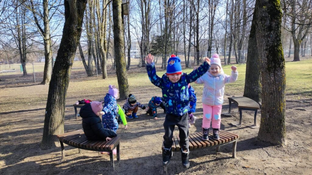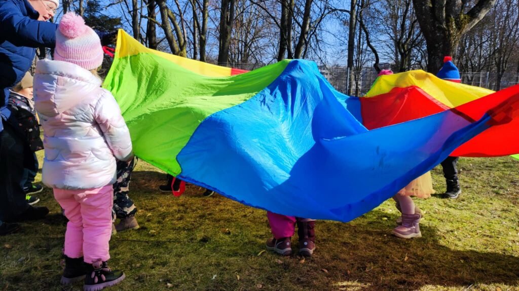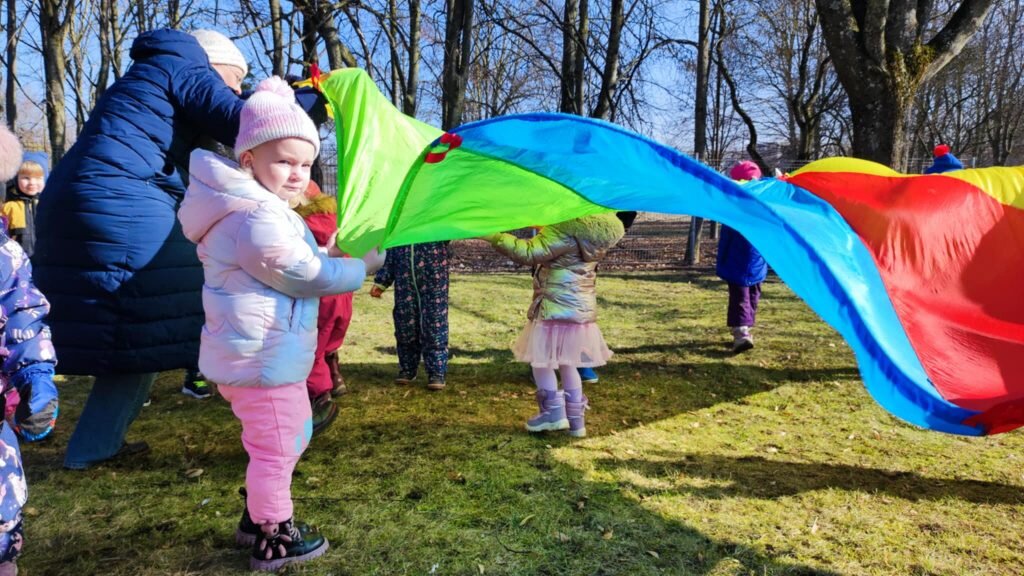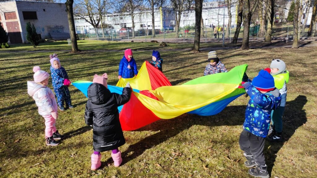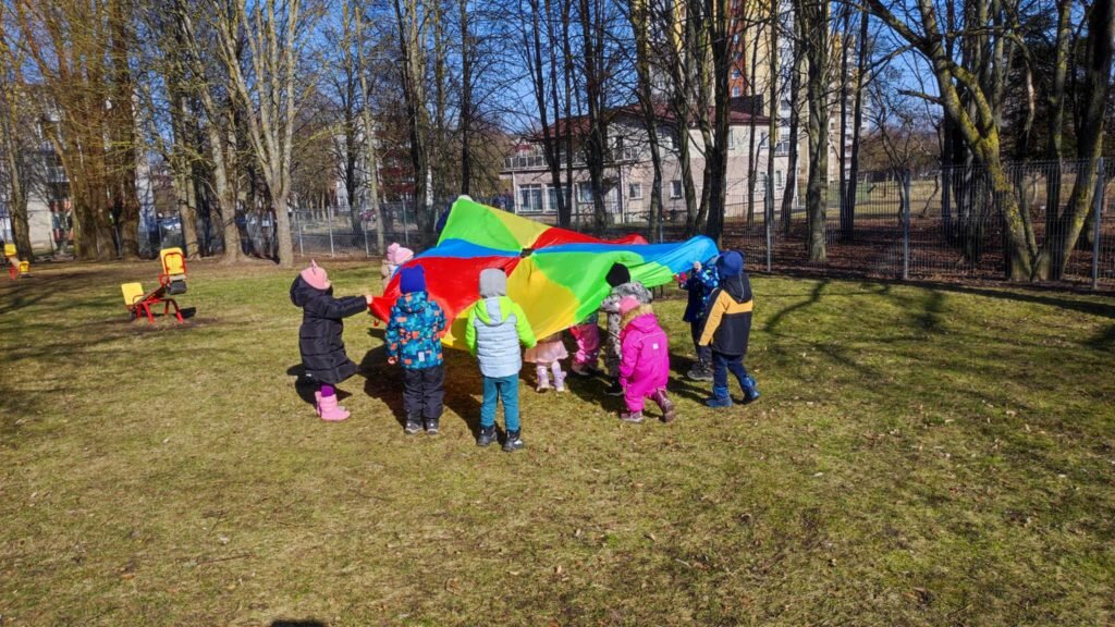 Kovo 7 d. „Pelėdžiukai“ grupės ugdytiniai kartu su mokytoja Sandra Vitkauskiene, džiaugsmingai nusiteikę, pasitiko pavasarį darželio miškelyje. Jie energingai atliko savo mėgstamą „Flinto“ mankštą, o vėliau sugalvojo linksmybę „gaudyti vėją“ šokinėdami nuo suoliukų. Su spalvotu parašiutu mėtė kamuolį, darė draugams tunelį ir lindo pro jį. todėl ugdėsi gebėjimą koordinuoti žaidimo veiksmus su kitais, lavino vaizduotę ir kūrybiškumą. Laikydamiesi žaidimų taisyklių ir susitarimų, vaikai mokėsi valdyti savo elgesį, bendradarbiauti komandoje, laukti savo eilės, išlaikyti dėmesį užduotims. Veikloje buvo daug džiaugsmo ir bendrystės, todėl vaikai mokėsi išreikšti savo emocijas, atpažinti draugų jausmus, tinkamai į juos reaguoti. Veikla vyko darželio miškelyje, todėl vaikai stebėjo gamtą, jautė vėją, patyrė gamtinę aplinką, ugdė pagarbą gyvybei ir aplinkai. Sportinė pramoga ne tik suteikė daug džiaugsmo, bet ir padėjo vaikams lavinti stambiosios motorikos įgūdžius, gerinti rankų ir akių koordinaciją bei stiprinti fizines ypatybes.