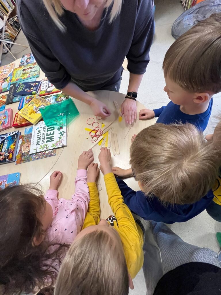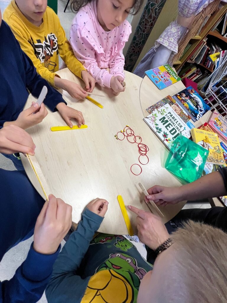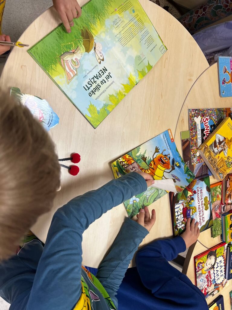 Po spektaklio vaikai susipažino su bibliotekoje esančiomis vaikiškomis knygelėmis – apžiūrėjo spalvingas iliustracijas, vartė puslapius, domėjosi pasakomis ir istorijomis. Vėliau laukė kūrybinė veikla – kiekvienas pasigamino smagų prietaisą „Zyzlį“, kuris mėgdžioja vabaliukų garsus. Vaikai džiaugėsi savo kūriniais ir „zyzdami“ linksmai keliavo atgal į darželį, pilni įspūdžių ir geros nuotaikos.