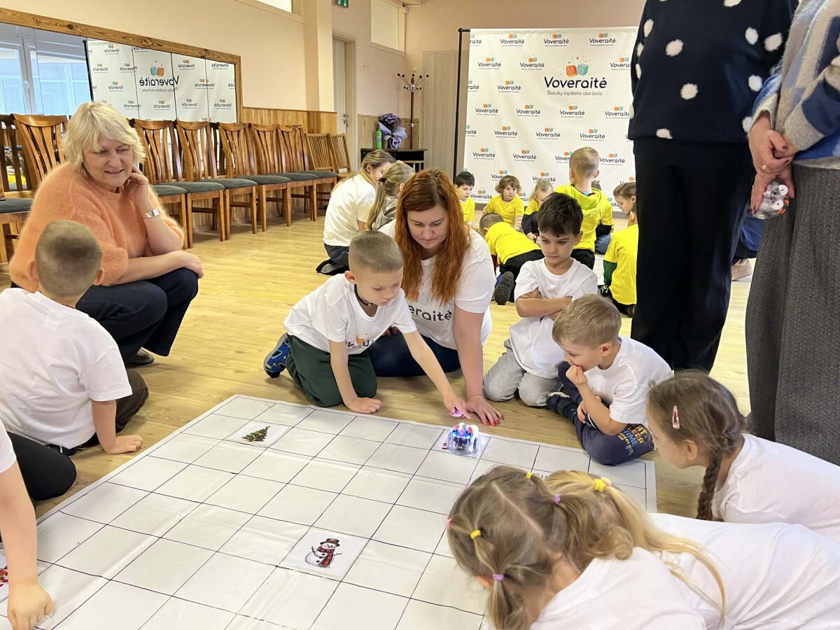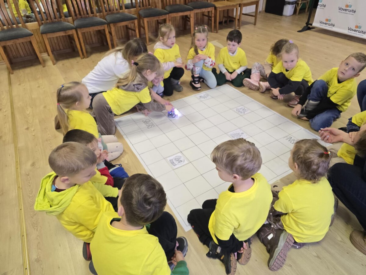 Vaikai leidosi į smagią kalėdinę kelionę, kurioje ne tik susipažino su programavimo pagrindais, bet ir lavino bendravimo, kūrybiškumo bei komandinio darbo įgūdžius. Mažieji dalyviai draugiškai bendradarbiavo, padėjo vieni kitiems ir stengėsi kuo tiksliau suplanuoti „Bee-Bot“ bitučių judėjimą per žiemos ir Kalėdų motyvais paruoštas trasas.