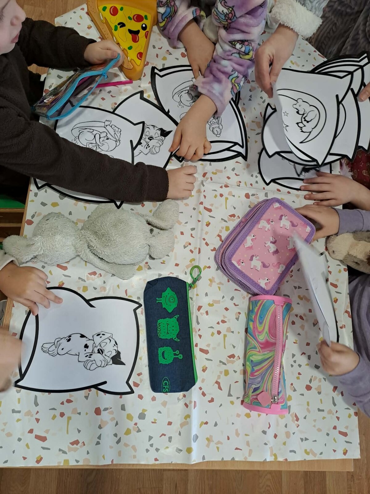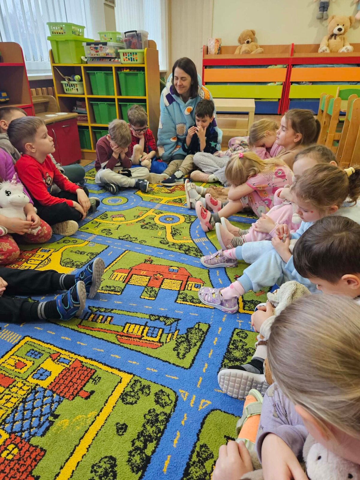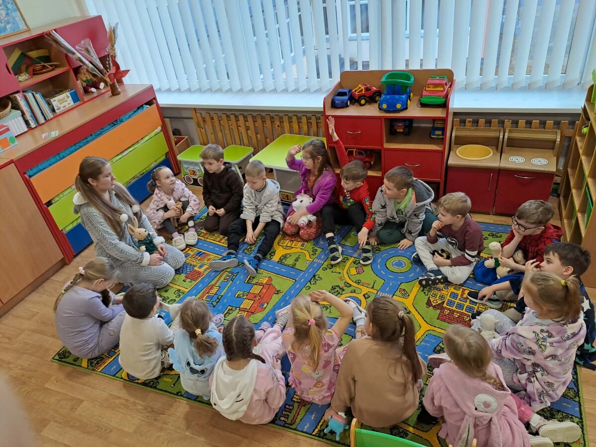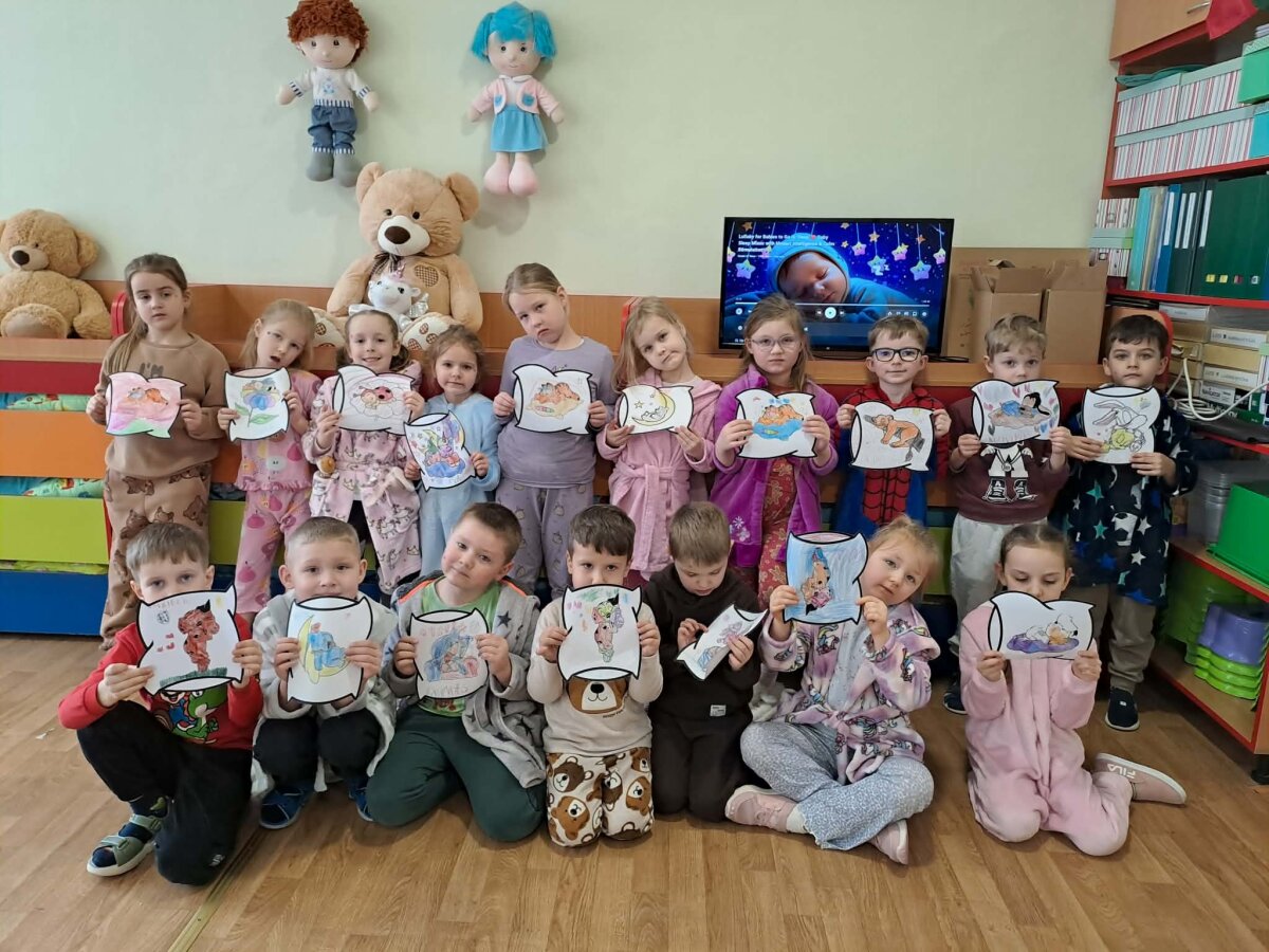 Veiklų pabaigoje vaikai atliko kūrybinę užduotį – spalvino pagalves, ant kurių ramiai miegojo įvairūs pasakų personažai. Ši smagi ir jauki diena padėjo vaikams geriau suprasti miego svarbą ir paskatino rūpintis savo poilsiu.