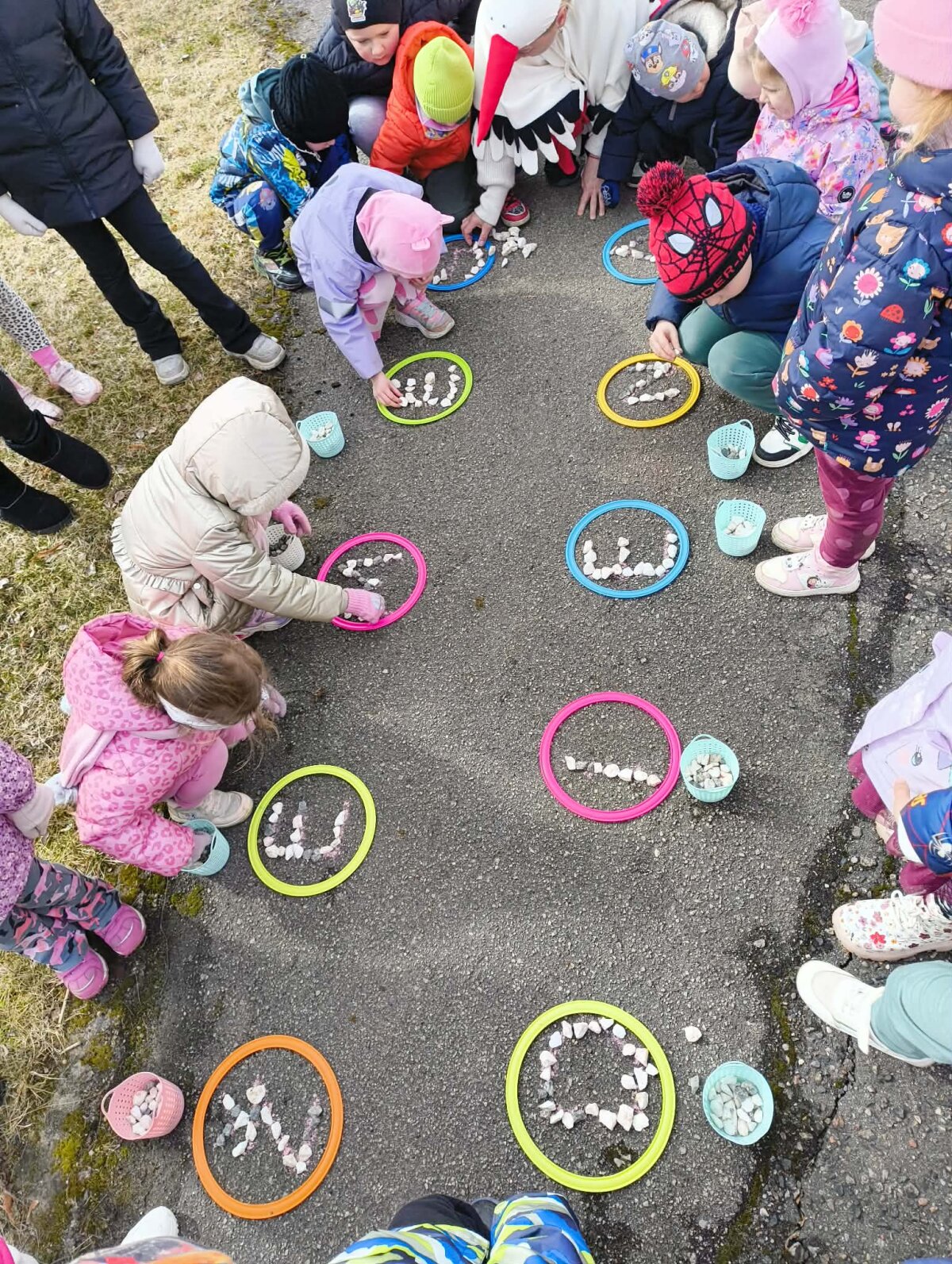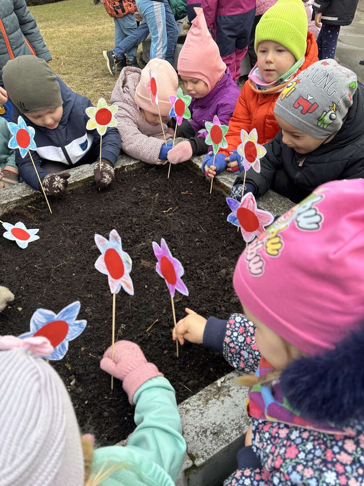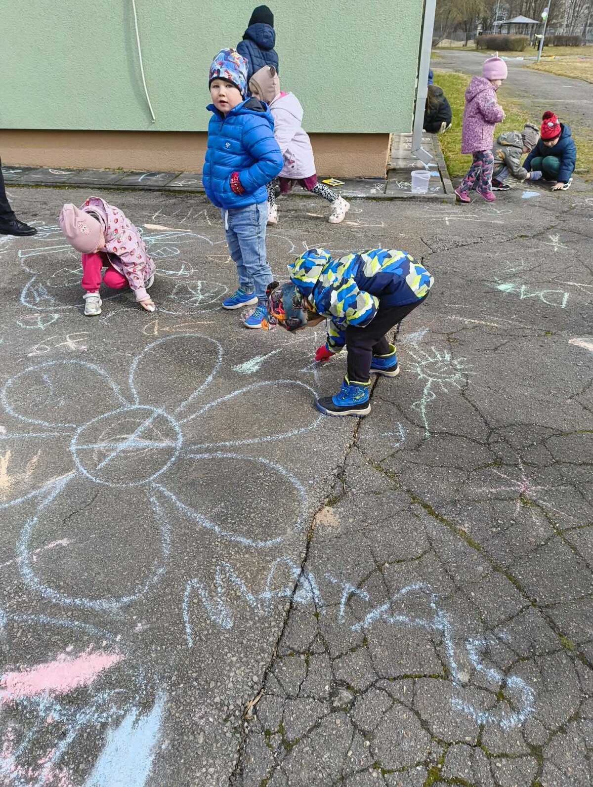 Šventės metu netrūko džiaugsmo: vaikai dainavo, šoko, iš akmenukų dėliojo žodžius „Žemės diena“, ant plėvelės piešė spalvingas gėles. Darželio takeliai taip pat pasipuošė vaikų piešiniais – juose atsispindėjo pavasario spalvos, meilė gamtai ir rūpestis mūsų planeta.